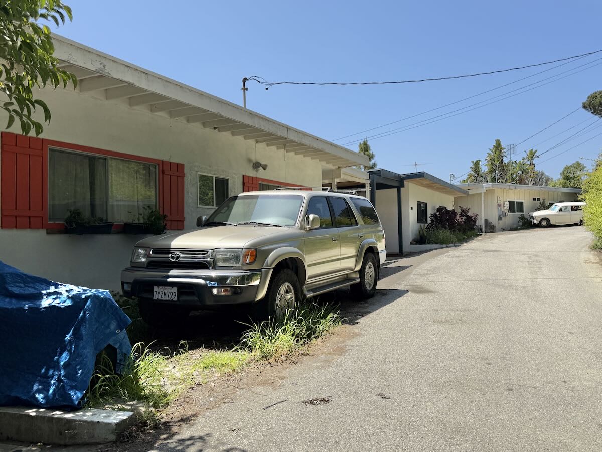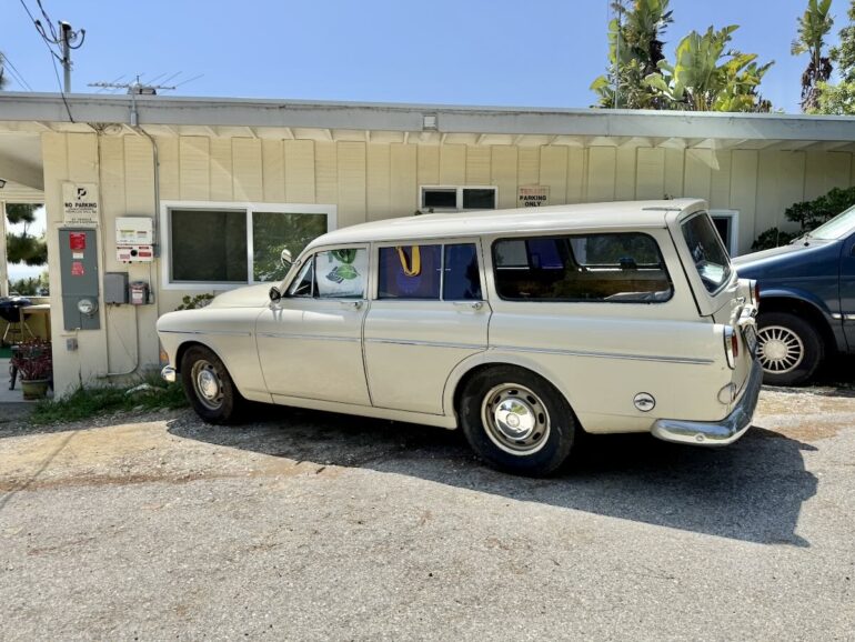 The midcentury buildings and vintage wagon definitely give a throwback feel to this stretch of the street.