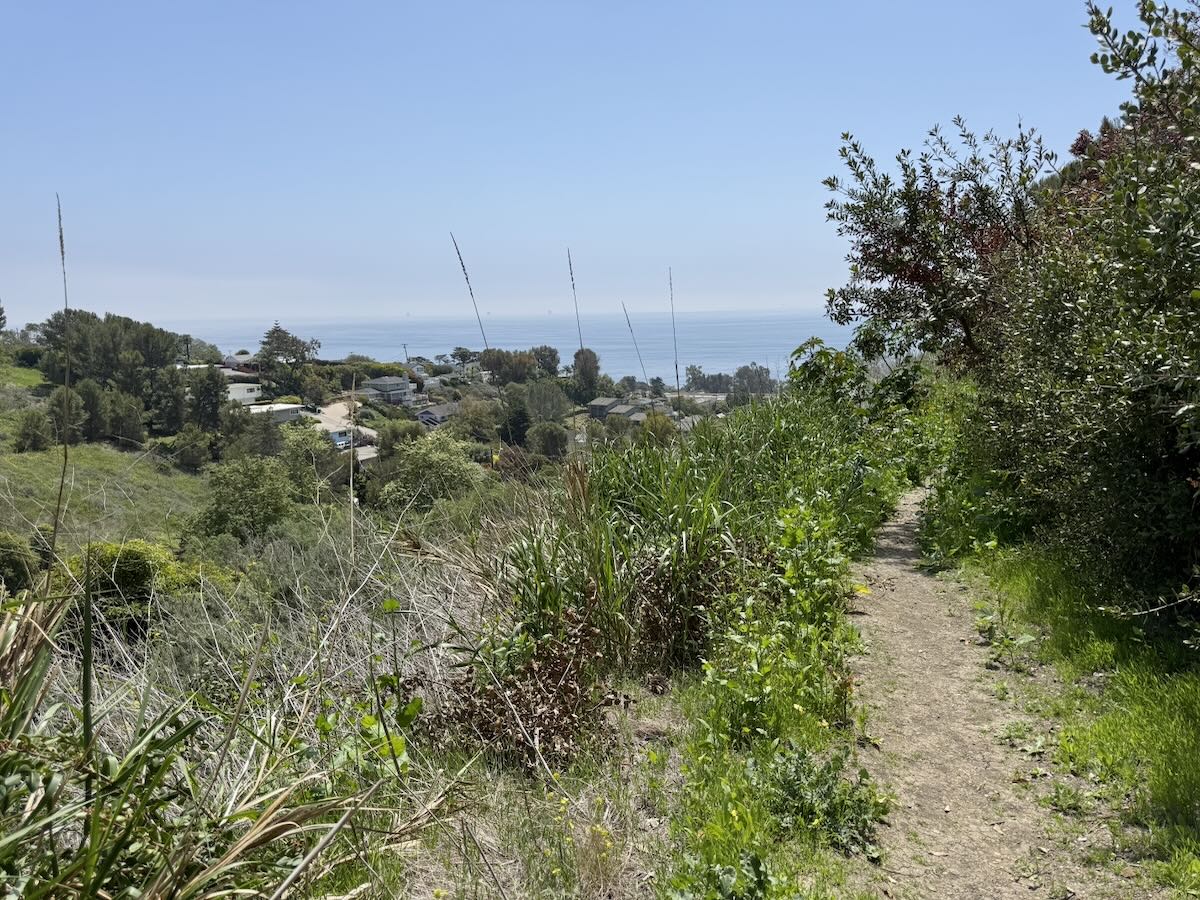 At the end of Calle Culebra is a trailhead for what the Montecito Trails Foundation calls Calle Culebra Trail. Back when I walked Ortega Ridge, I could see it from Ortega Ranch Road. This time I actively explored it—not all the way, but far enough to smell the delicious pines and admire the view back toward Summerland.