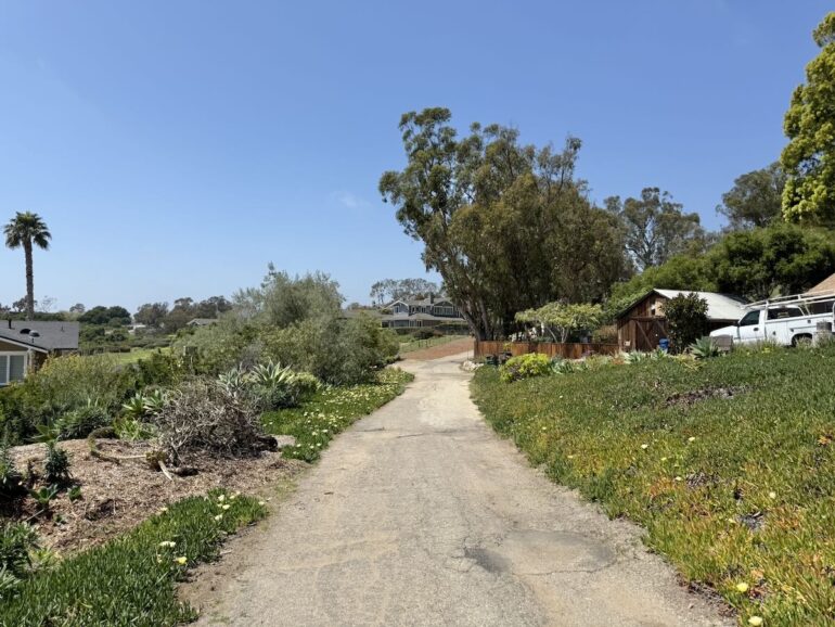 As per usual, I noticed different things on the walk back down—such as how these houses on Whitney Avenue are neatly stacked and what appears to be a vacant lot at the bottom of Calle Culebra. It’s part of 2160 Ortega Ranch Lane, way to the west.
