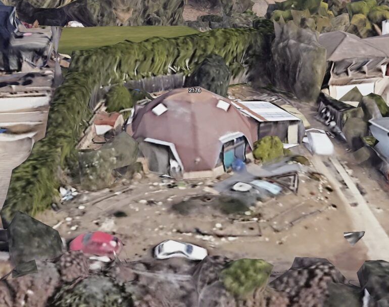 The geodesic dome – simply known at “The Dome” was longtime home of Summerland artist Dennis Spangler (and his partner Ron). We will be celebrating Dennis’ life with a fantastic book of his hand painted fabrics, jewelry, bamboo paintings and other works of art at a party hopefully in August in Summerland. Will let Siteline know – and hope to see you there! Leslie