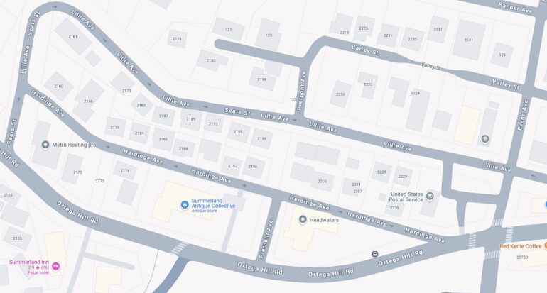 My objective was to explore the area west of Evans Avenue, where Summerland’s street grid—which already has some holes in it—looks totally frayed, at least in comparison to the tidier eastern edge.