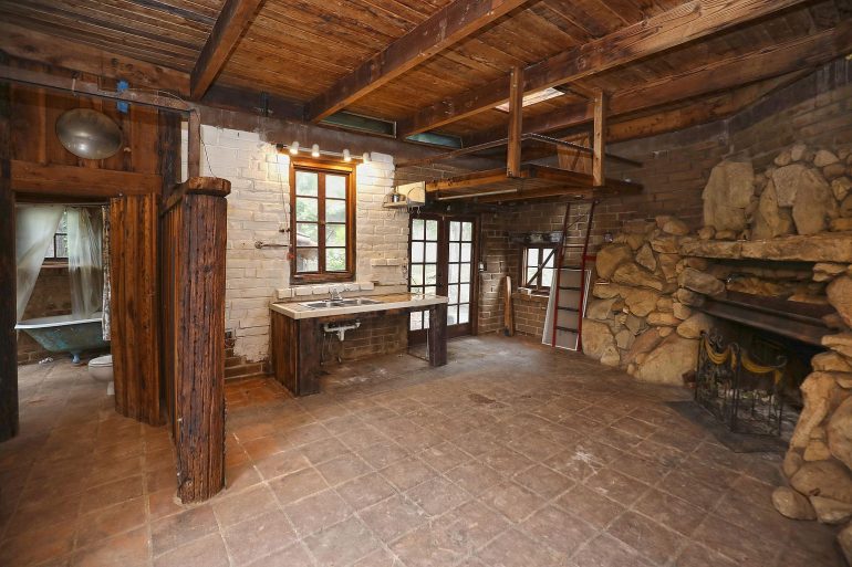 The original Knapp house—or part of it, anyway—at 833 Knapp Drive (↓$400K to $4.95M) has the potential to be spectacular, but you have to love the quirky floor plan. And the first thing you’d want to do is screen out the house next door, which overlooks the pool and yard.