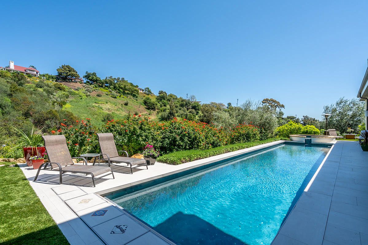 You can stand in the living room of 1326 Hillcrest Road (↓$245K to $3.75M) and see classic Riviera ocean views one direction and big mountain views the other. Alas, the 1950 house is likely a teardown. But if you’re looking to build in the Riviera, Studio William Hefner could do something amazing in that spot….