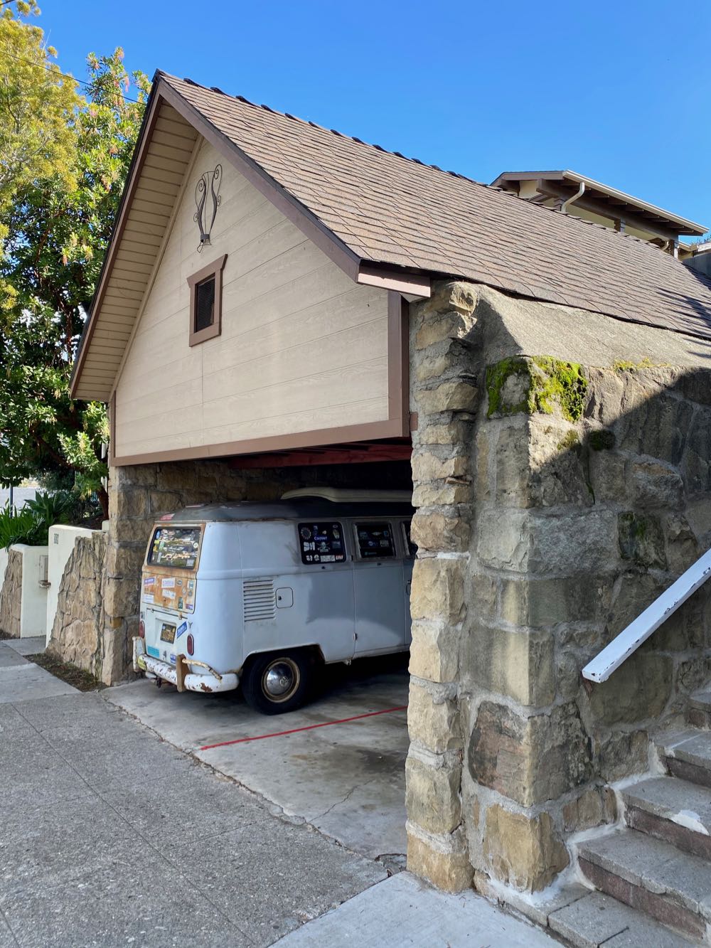 This is what I mean by the mix of architecture: the Legal Aid Foundation’s sweet cottage, Vining Construction’s midcentury-modern office, an old adobe, a stone garage….