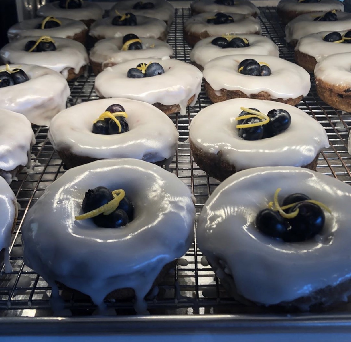 ••• It took a bit longer than expected, but Onus Donuts has opened on State Street, between Haley and Gutierrez. For the next few days, it’ll open at 8 a.m., then shift to 7:30 a.m. Above: “Fresh blueberries, vanilla-lemon frosting, and lemon zest, all nestled on a blueberry cake donut.”