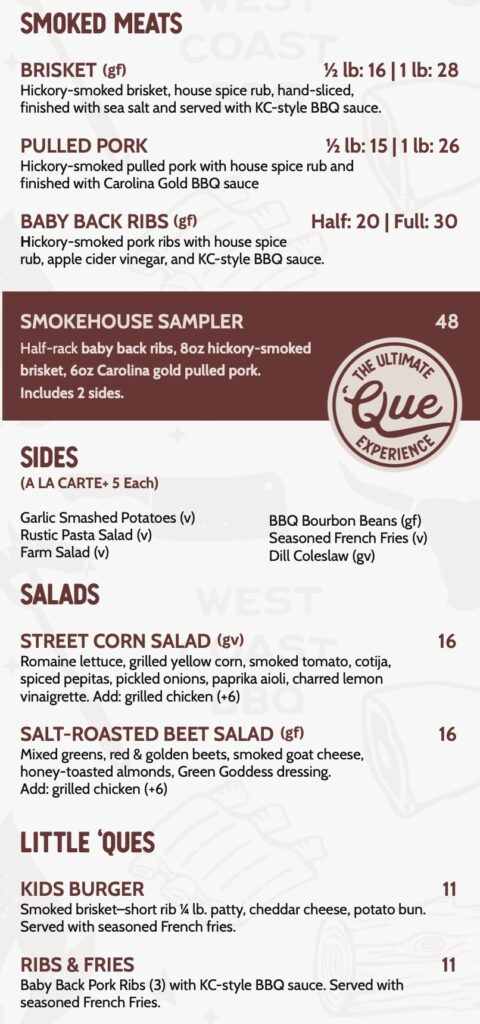 ••• Que from Solvang’s Whiskey ‘N Rye opens December 9 at the Santa Barbara Public Market. From the press release: “Que will serve its signature style of West Coast BBQ, blending flavors and regional techniques from Kansas City to North Carolina. This carefully curated technique includes Whiskey ‘N Rye’s practice of smoking a variety of meats and vegetables twice daily in an indoor hickory wood chip smoker. Que will serve Whiskey ‘N Rye fan favorites like the brisket, pulled pork, and baby back ribs and new dishes specific to Que.” Update: Here’s the menu.