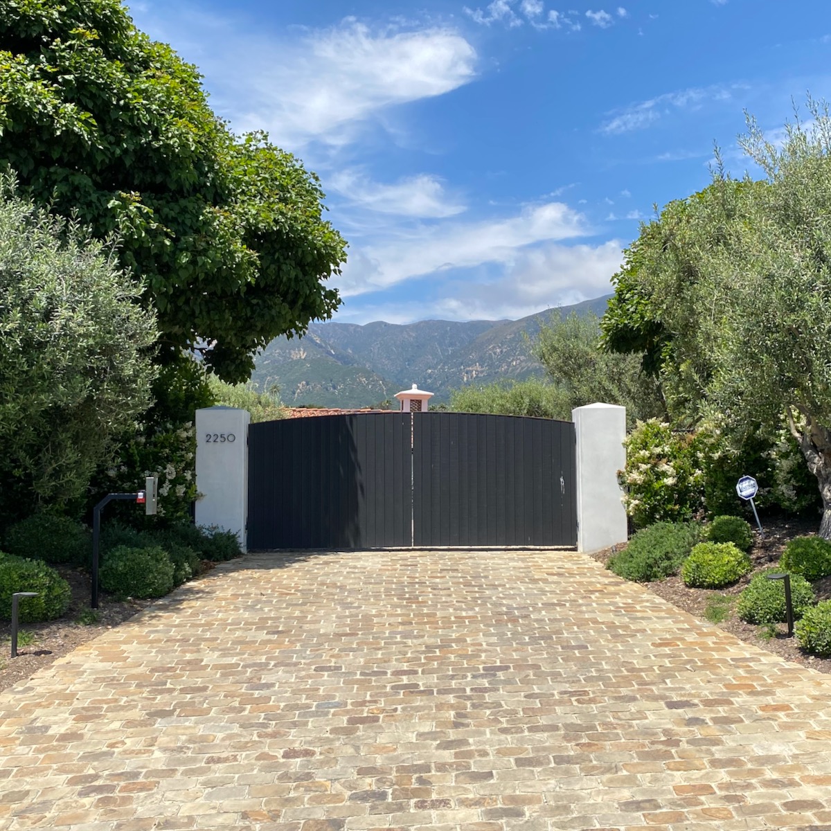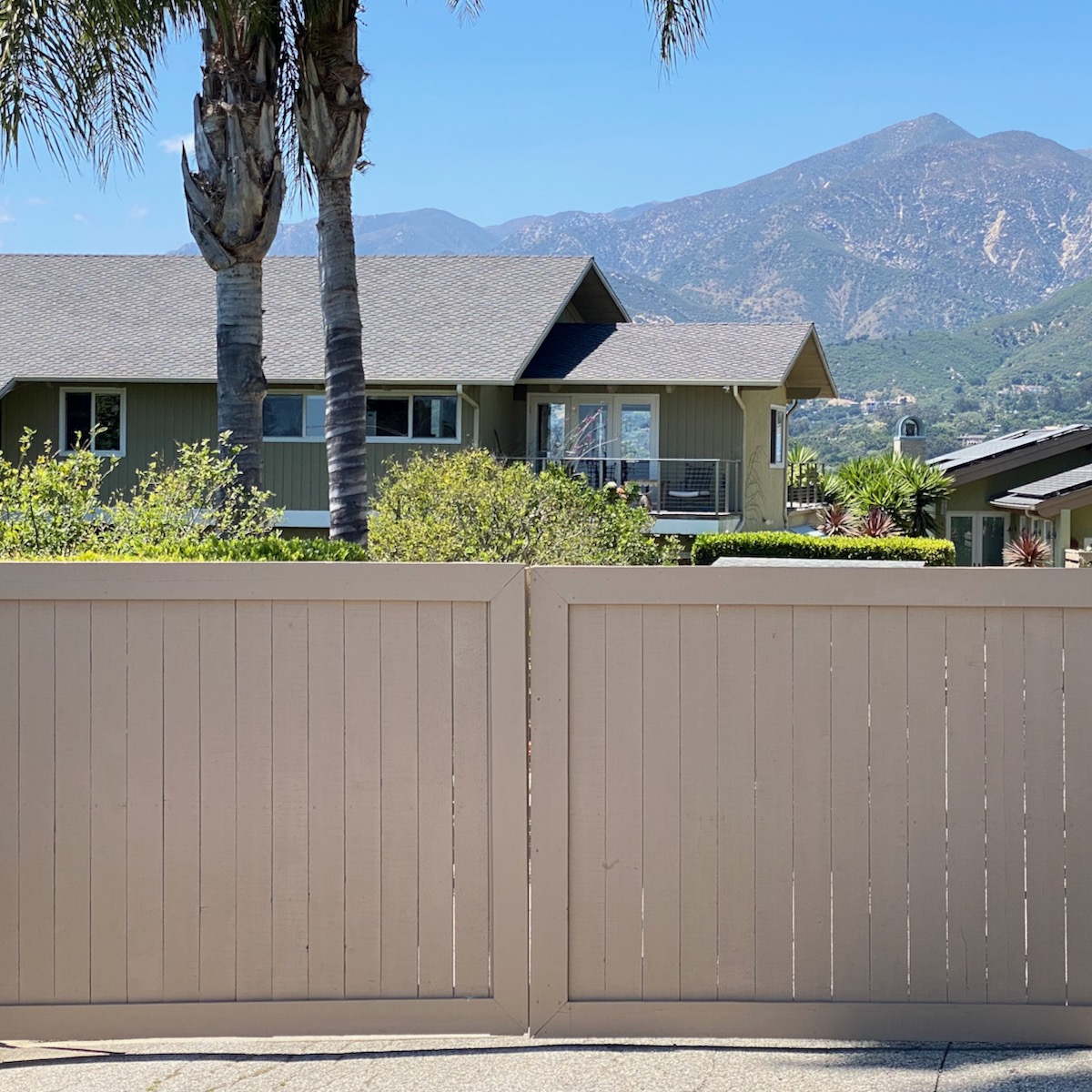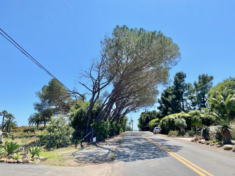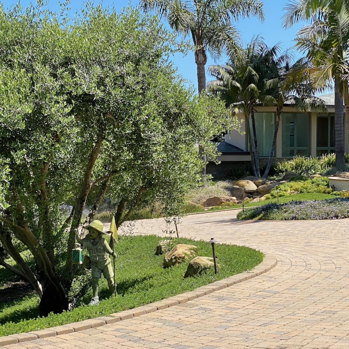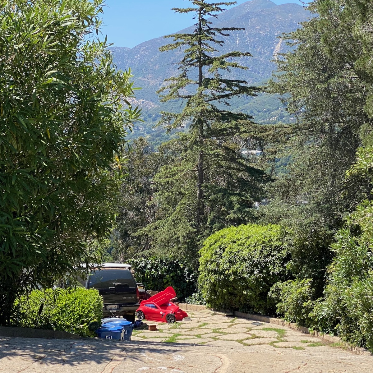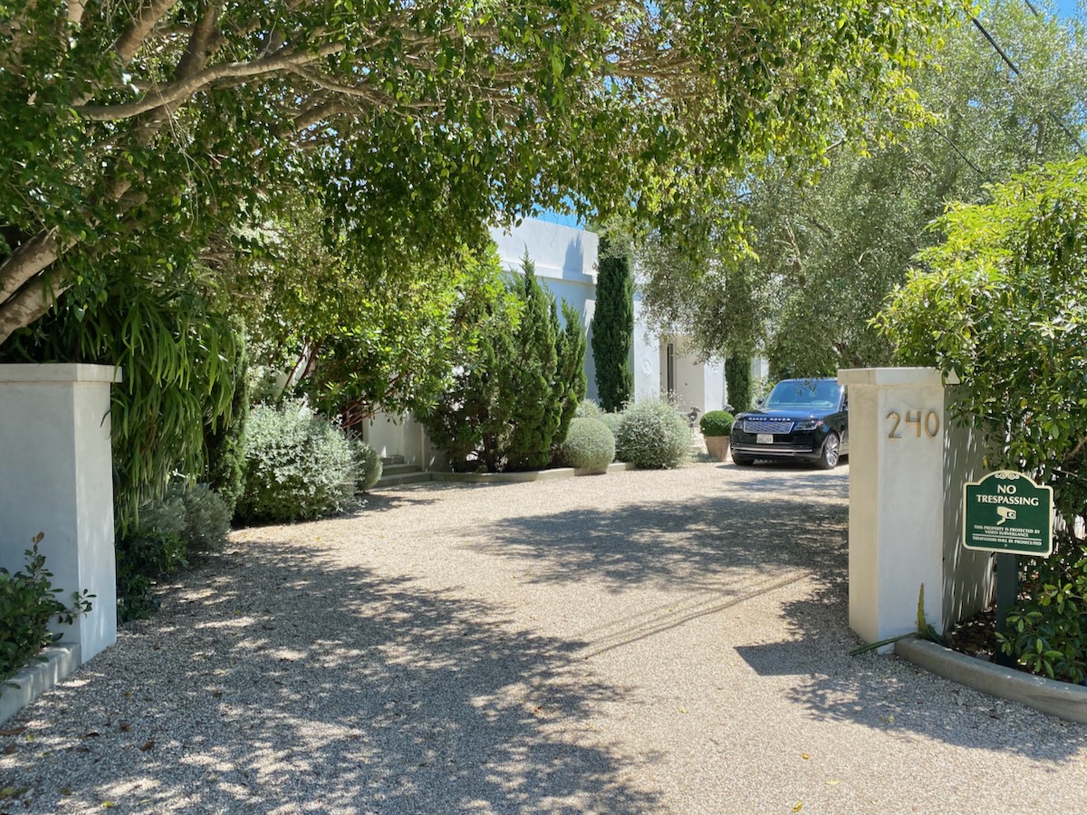 While on Ortega Ranch Lane, I noticed these steps down to the street, so I figured there had to be a trail leading to Summerland—otherwise, I couldn’t see why the homeowner would’ve bothered. I was right, but it turns out that I had already passed the trail. One of the houses at the end has a sumptuous motor court and pergola, and while I admire the effort to hide the utility infrastructure, it stopped short of a total win.