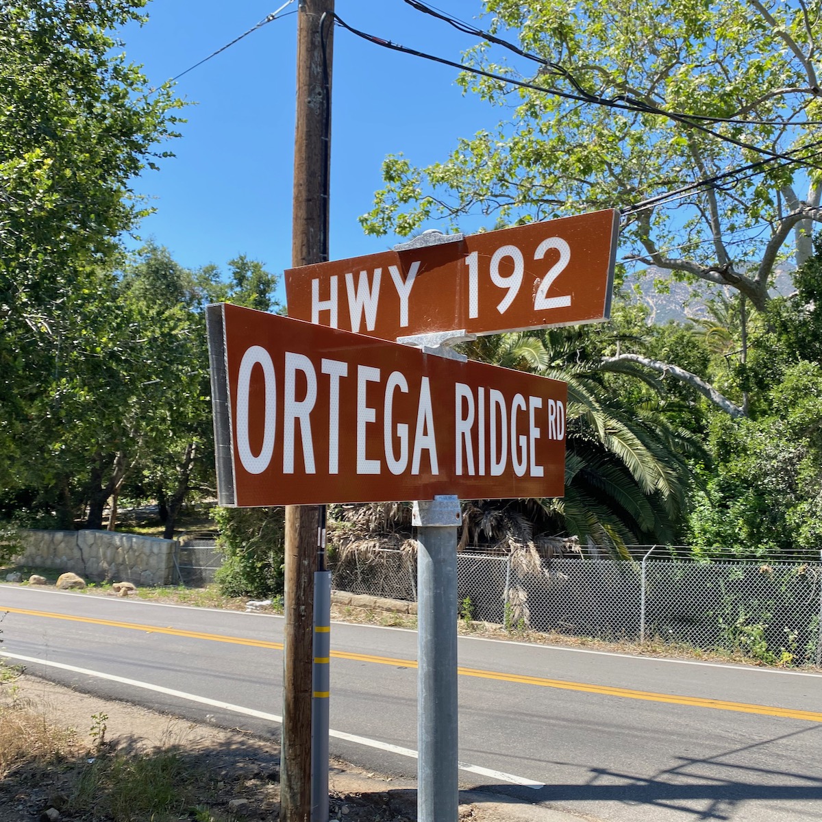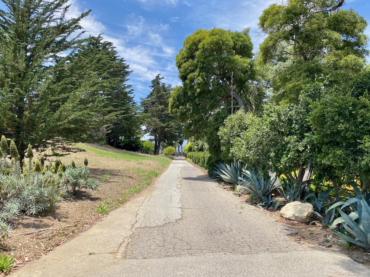 At the end of the street is a little cut-through to what feels like a private lane (but Google Maps calls Ortega Ridge Road).
