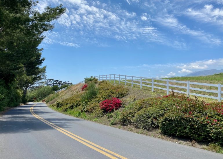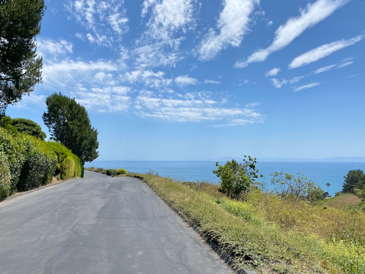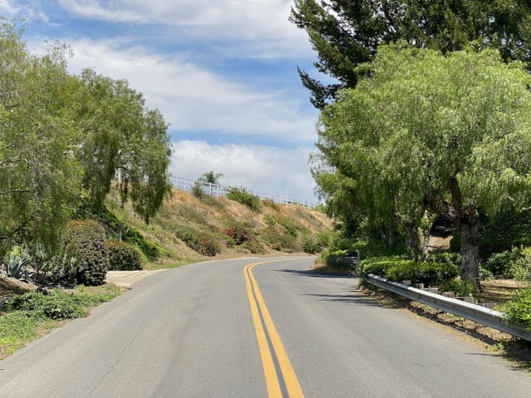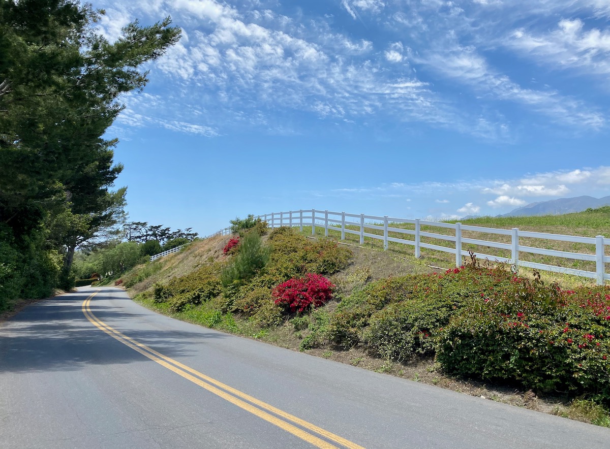 Time for another side road: Ortega Ranch Road, which heads off to the right; Ortega Ranch Lane branches off of it. Ortega Hill Road, Ortega Ridge Road, Ortega Ranch Road, Ortega Ranch Lane…. The redundant street names show a lack of imagination. I didn’t spot any cameras, let alone ones that could monitor speed, and in any event, I’m not sure speeding is much of a concern. As you’ll soon see, the views compel you to slow down.