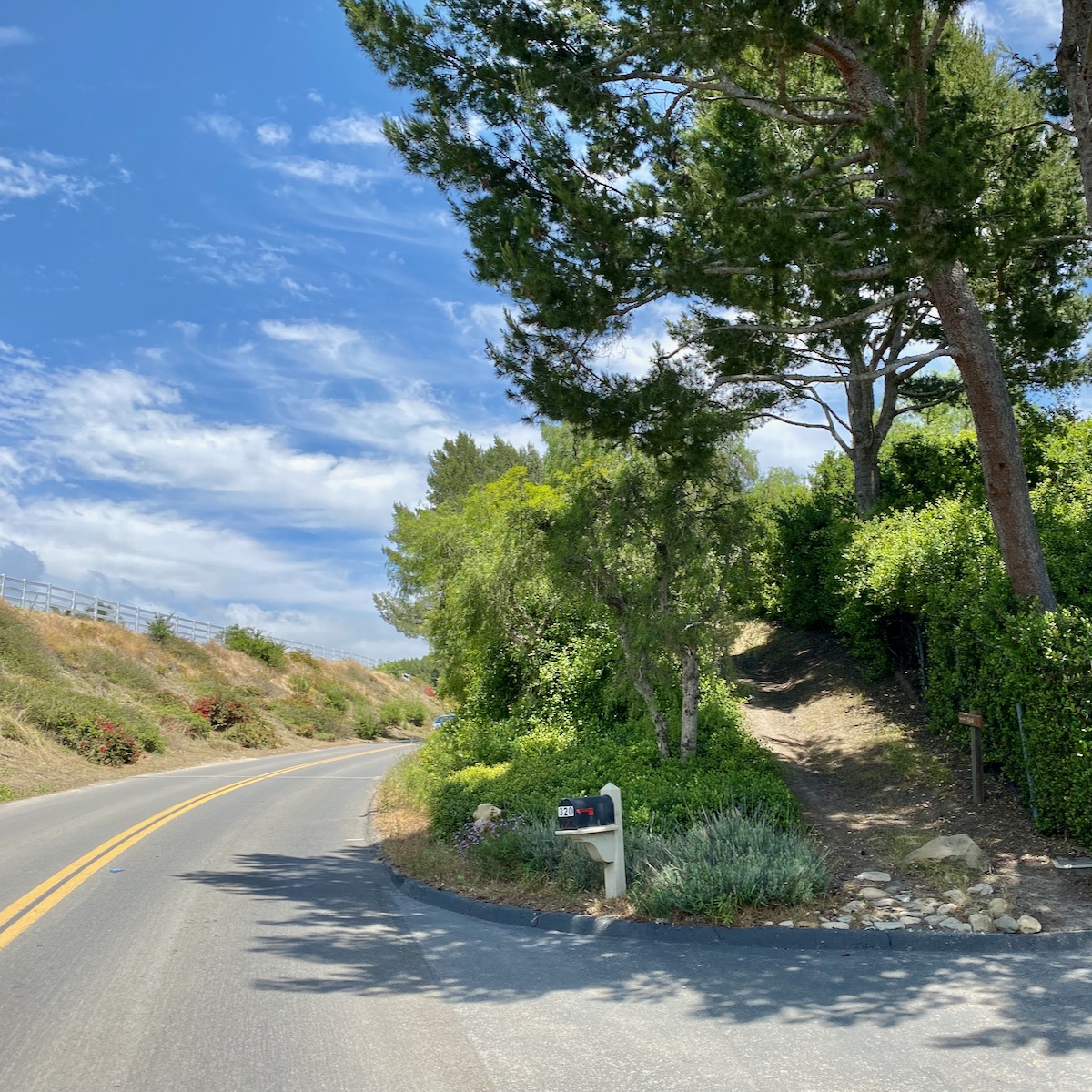 First, the smell! Ortega Ranch Road and Lane both have a lot of pine trees, and the day I went, there was a delightful smell—like classic pine, but with a soapy element.