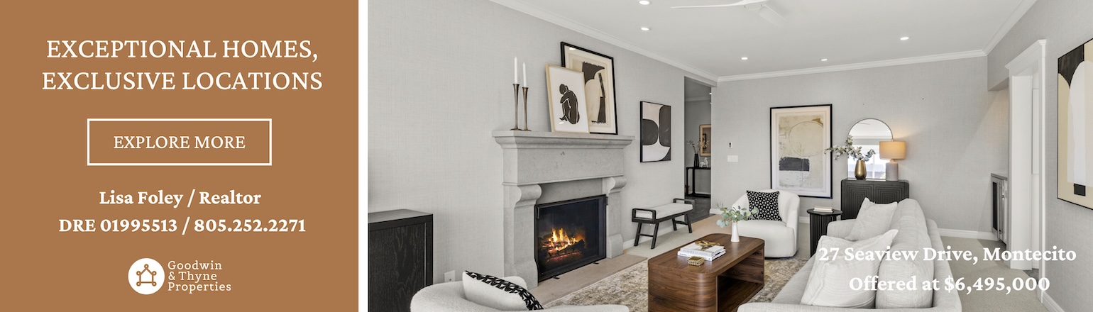 Other noteworthy new listings: Another massive Mediterranean mansion in Montecito; teardown next to the Pepper Hill lair-in-progress; Hope Ranch compound with putting green; move-in-ready in Summerland; on the seventh fairway in Birnam Wood; new-build near the San Marcos Preserve; contemporary design in the Sea Meadow enclave.