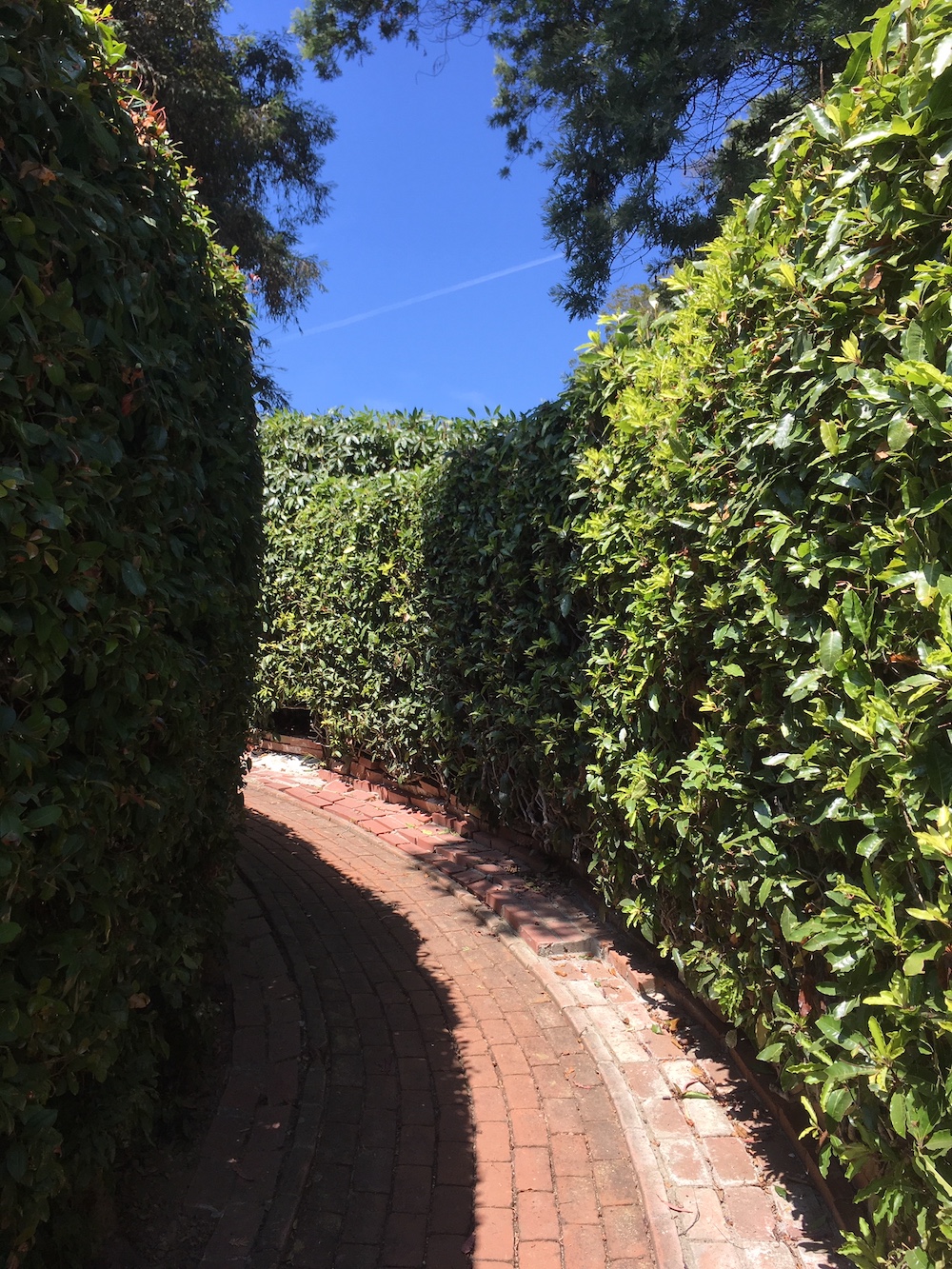 In the front yard is a delightful folly: a hedged room that serves no clear purpose. To the west is a fantastic wood-burning fireplace.
