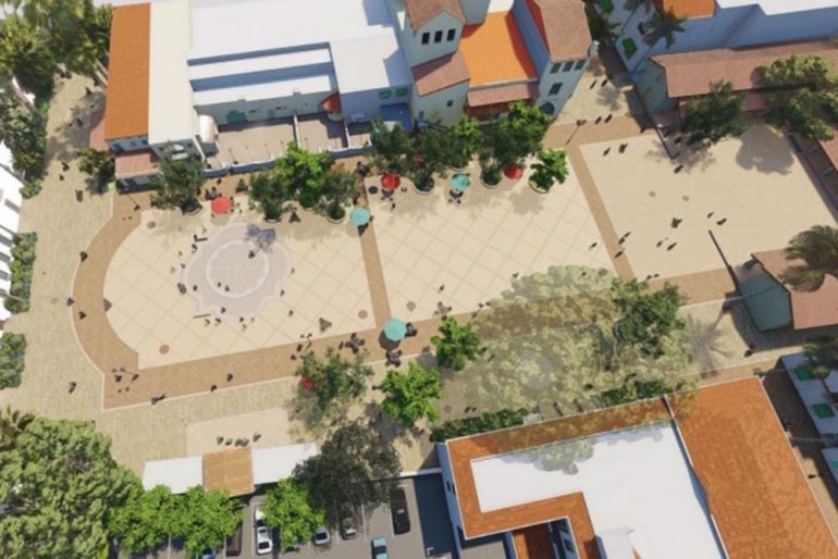 ••• Noozhawk has a report on the recent joint meeting of the Historic Landmarks Commission and the De La Guerra Plaza Revitalization Design Advisory Committee to discuss the overhaul of De La Guerra Plaza (rendering below). The plan to get rid of the grass is called “controversial,” but there seems to be only one person complaining.