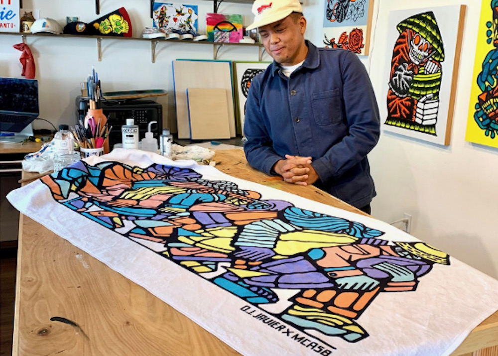 ••• Santa Barbara artist DJ Javier recommended a bunch of local places to the L.A. Times; I’m not sure there’s much in the way of news in the article, except I hadn’t known about this excellent towel ($60) he designed for the Museum of Contemporary Art.