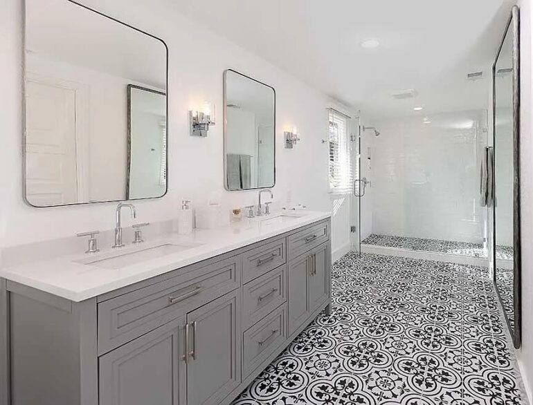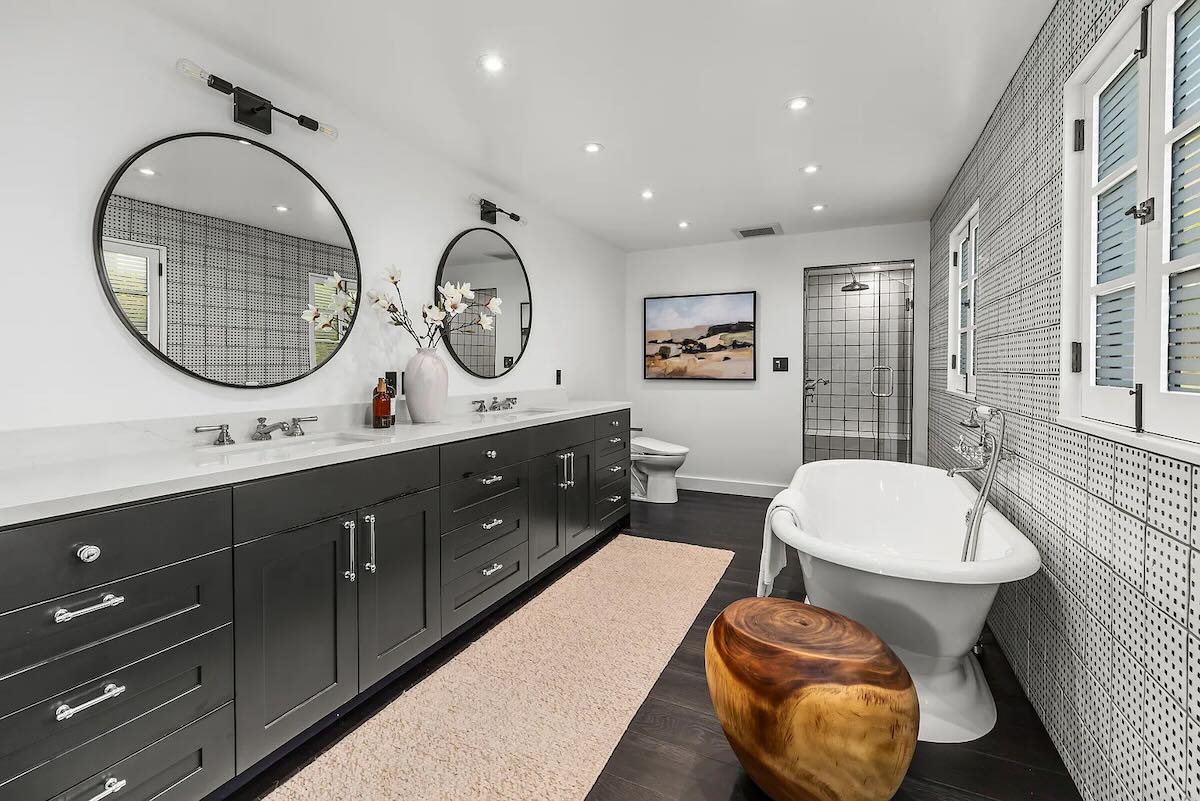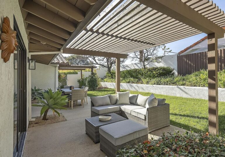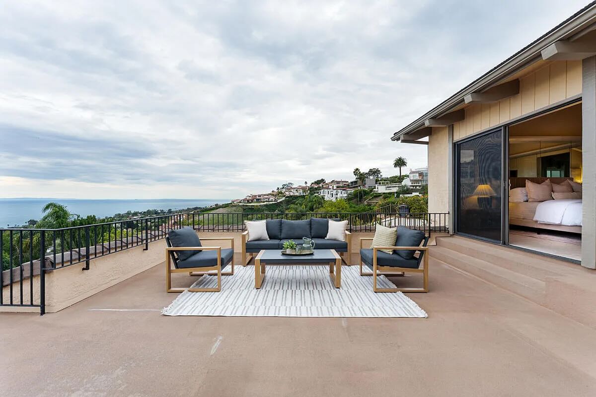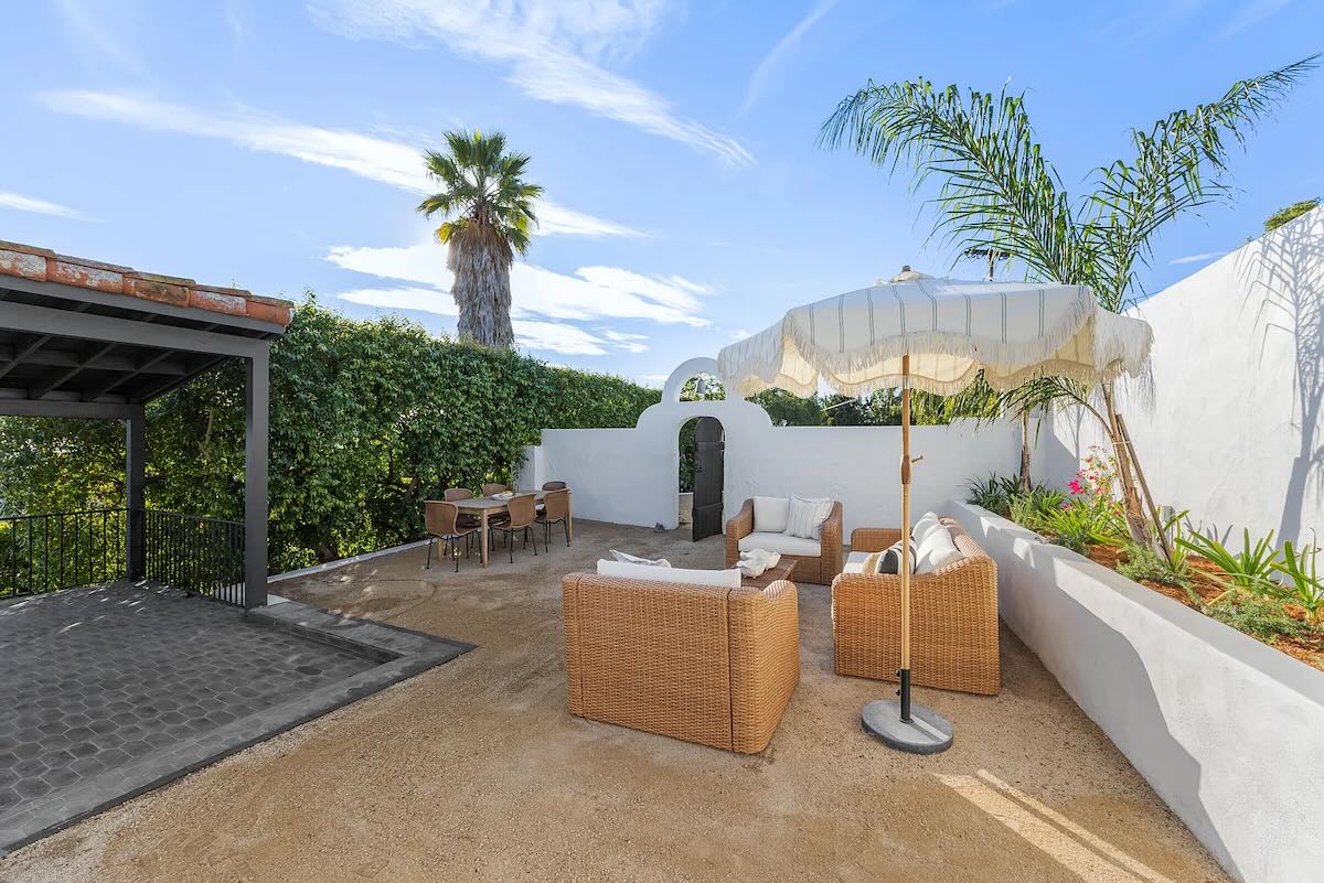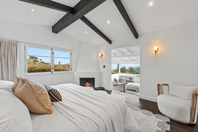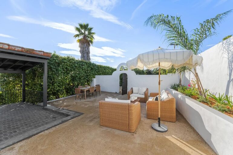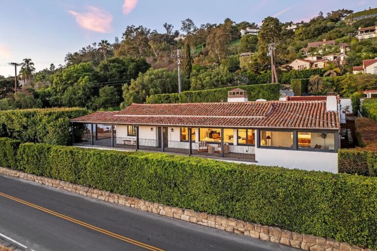 Located in the quarter-acre wedge of land at the intersection of Dover Road, 1226 Alameda Padre Serra ($3.675 million) is a 1929 Spanish three-bedroom redone with stylish black-and-white interiors. When you’re inside, you can admire the classic Riviera view and forget that APS is right below. The outside space isn’t quite as enchanting.