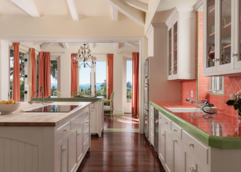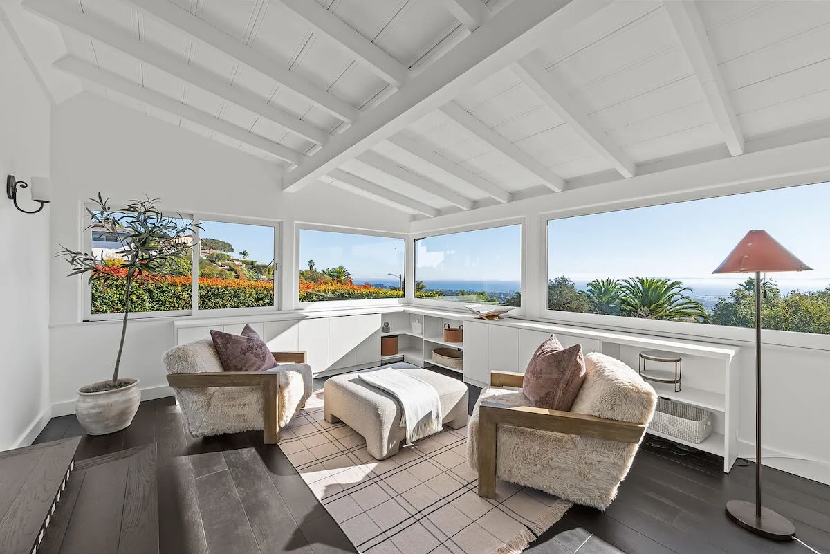 439 Meadowbrook Drive ($8.995 million) in Ennisbrook will go fast. Built in 1999, it has terrific energy, thanks in good part to the way color is vivaciously deployed—that pink exterior! And preppy kitchen!—and nice flow, with windows on the mountain and ocean sides of the living room. A surface refresh is in order, particularly in the bathrooms, and even then, the house will never be as grand as many of the homes in the community—no foyer, no office, the three bedrooms grouped together in one wing (with a primary bath that has just one sink). It works best for people who either don’t plan on having many houseguests or who can find a way to add an ADU (reorganize the motor court?) or buy one of the nearby casitas. And a pool seems inevitable.