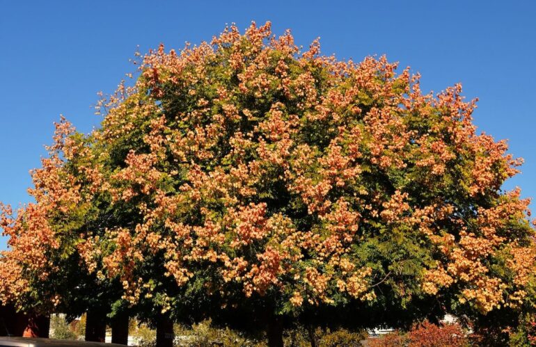 ••• The tree of the month: “From summer through late fall, the Chinese Lantern Tree provides a spectacular display of color. It begins with spikes of brilliant yellow flowers—and continues as the flowers transform into luminous seed pods that resemble tiny Chinese paper lanterns.” —Edhat (photo by David Gress, courtesy Santa Barbara Beautiful)