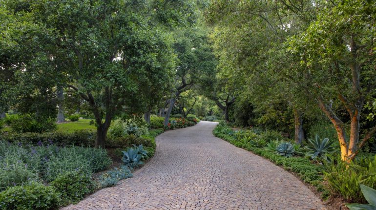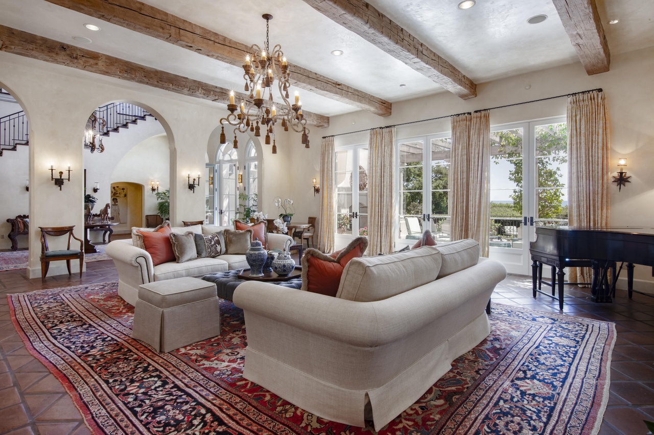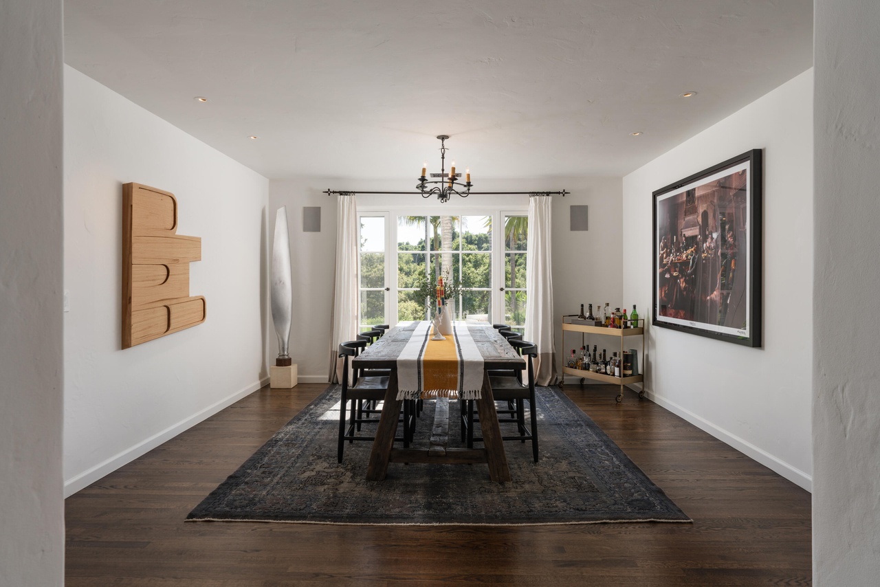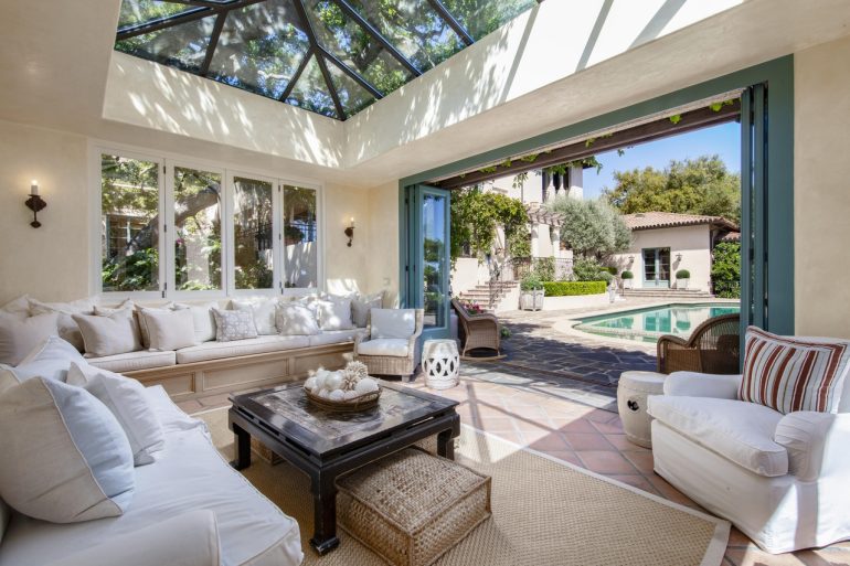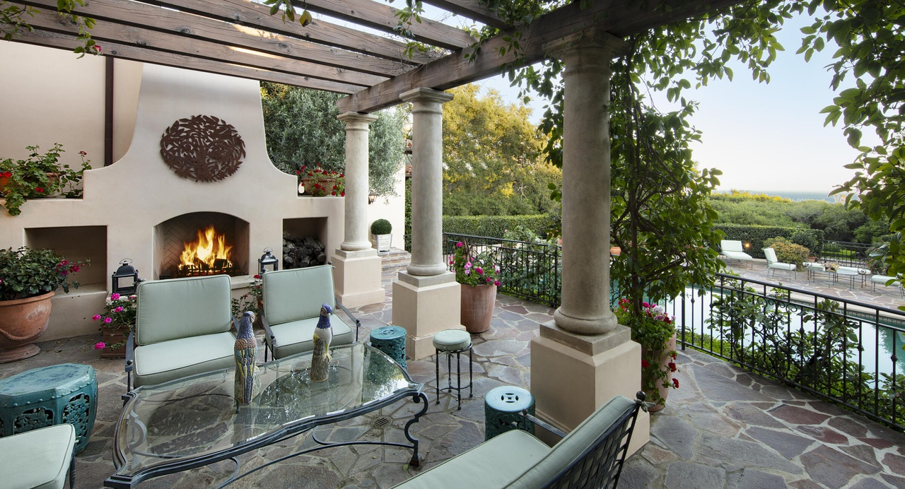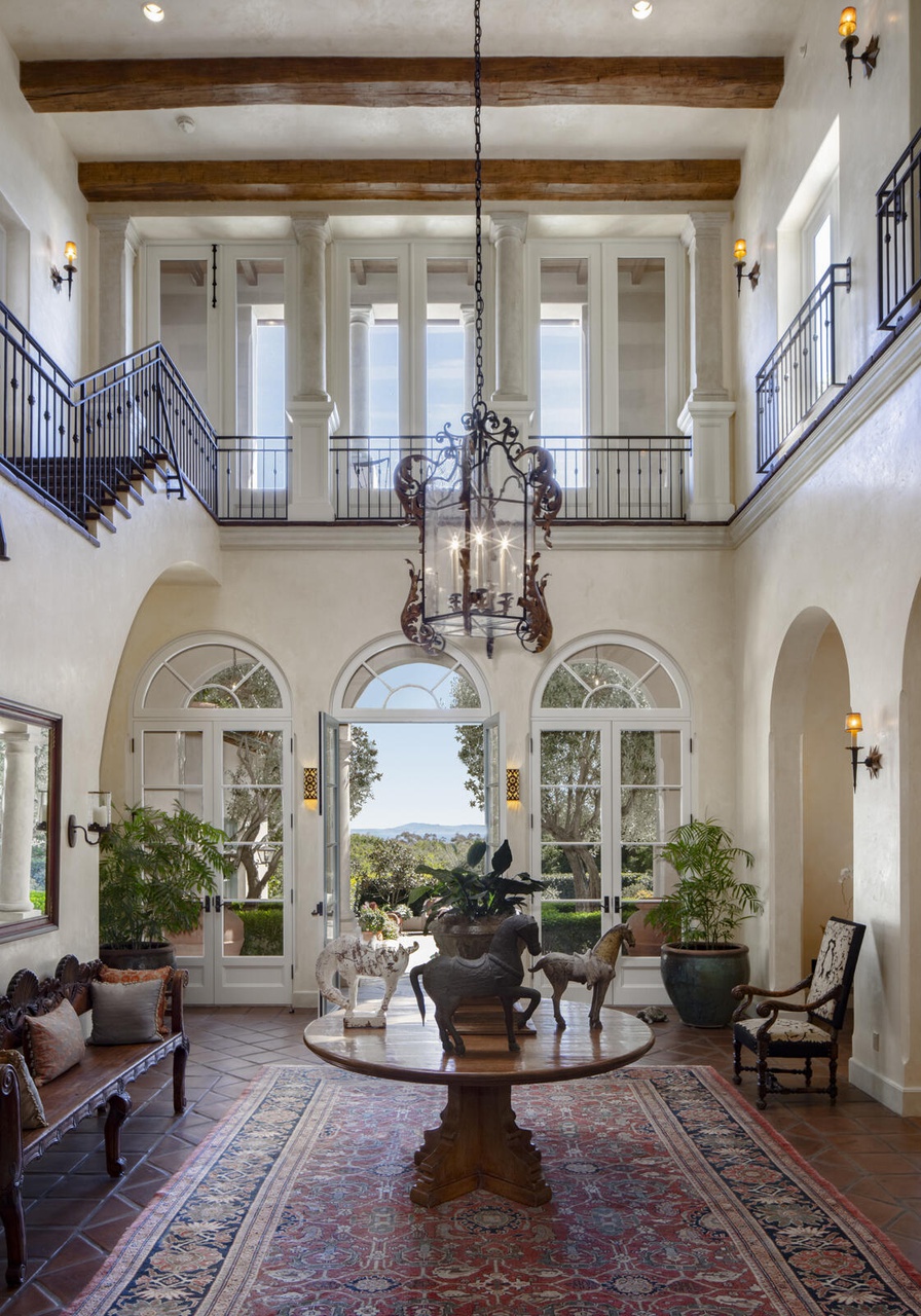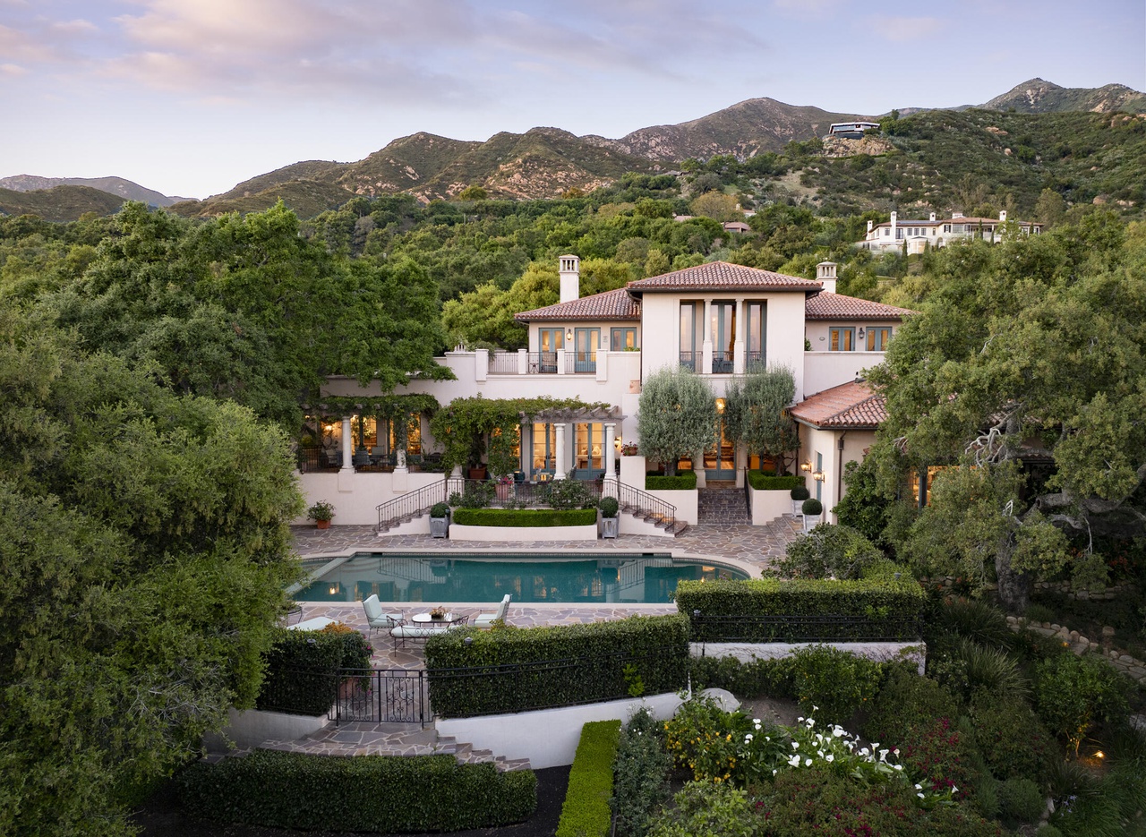 Short of seeing it in person, the easiest way to get your head around 1360 E. Mountain Drive ($27 million) is to spend some time with the floor plan: the main house is a sprawling 9,695 square feet, with a double-height atrium off the entry and many little rooms on the way to other rooms. The interiors are done in a standard Mediterranean style, but the architecture could handle something much more fabulous—a little more Tony Duquette. Needing no upgrade are the prime location, the 2.8 acres of land (with two-bedroom guest house and pool cabana), the lush landscaping (thanks to a well), and the driveway, one of the best in town.