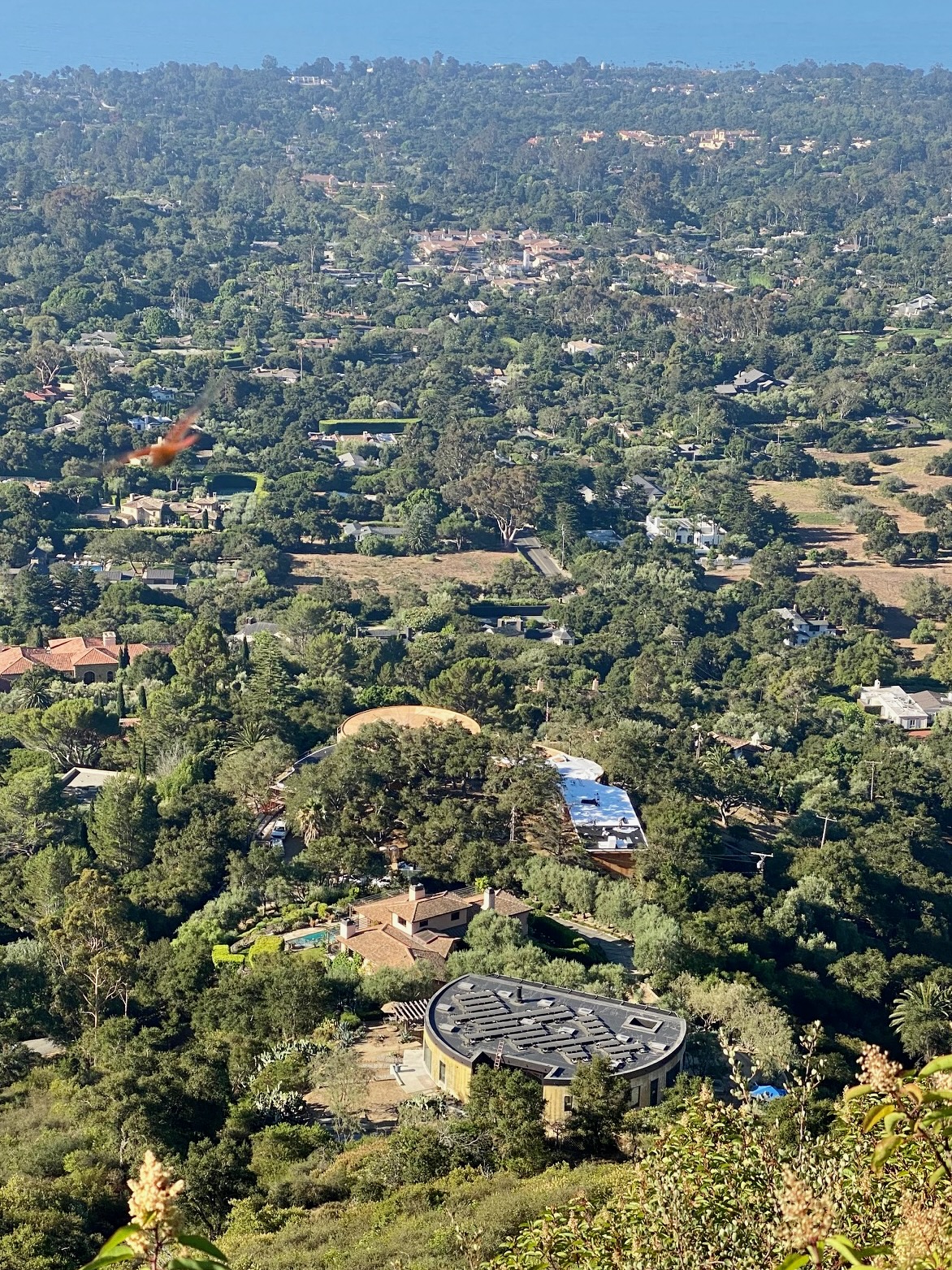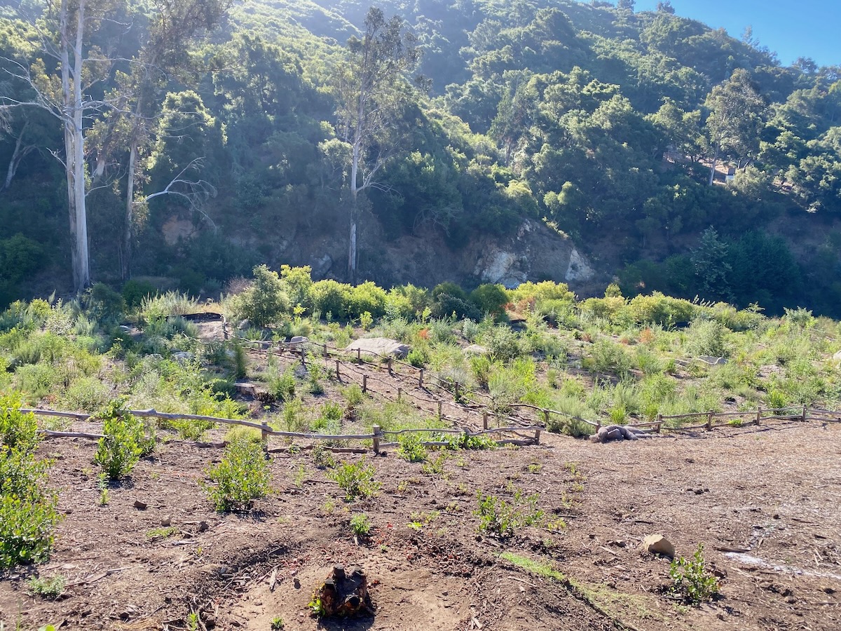 ••• While hiking McMenemy Trail, I took a moment to check in on the construction at the northern end of San Ysidro Ranch; the land got cleared of all but oak trees, and now split-rail fences have been put up and planting is underway. The unofficial word, long ago, was that Ty Warner wanted a botanical garden.