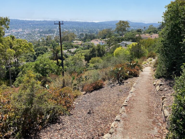 ••• As I mentioned in the recent roundup of new listings, I was unaware of the network of public trails below Mission Ridge Road in the Riviera. The signs at the access points on Mira Vista Avenue, Dover Road, and Dover Hill Road all describe it as Franceschi Park, which is confusing to those of us (including Google Maps) who think of the park as being north of Mission Ridge Road. But the city of Santa Barbara’s parks map (below) shows that Franceschi Park also has a lower section, not unlike nearby Orpet Park. Naturally, I went over for a look, and I had a blast. Go check it out! And as on any trail that abuts homes, don’t be an ass.