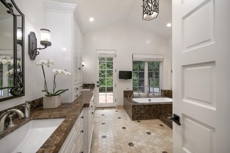 215 Santa Anita Road ($2.395 million) is one of those houses where the front looks more like the back. Love the stained glass window in the shower.