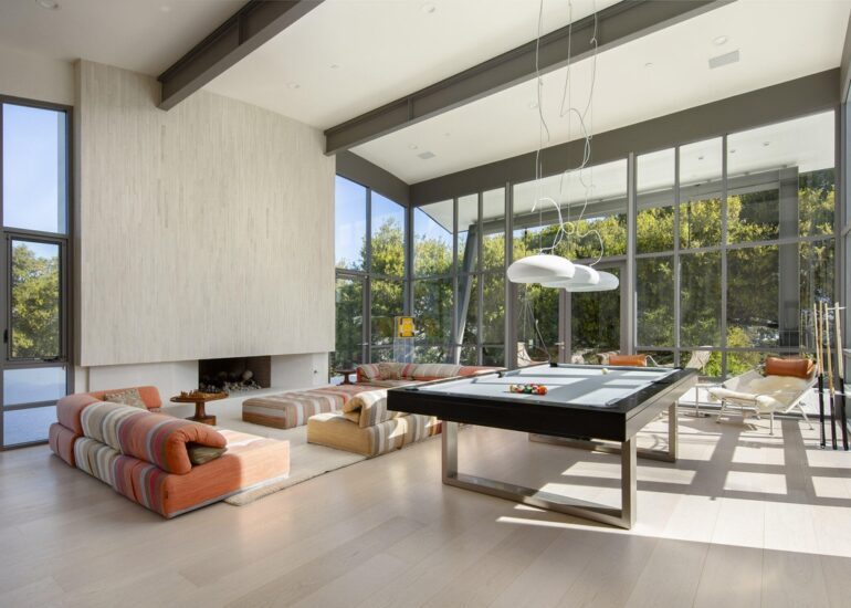 Two houses away, 4536 Via Vistosa ($6.49 million) is more of a “before” situation, but the 1957 house has some neat moments (and I don’t mean the barn doors). P.S. The listing doesn’t explain the trio of monoliths.