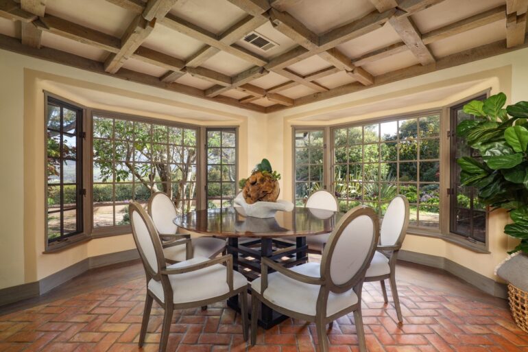 When 4450 Via Alegre ($9.9 million) was last on the market in late 2019/early 2020, someone likened the 2000 architecture to that of a small municipal airport. Post-renovation, the place is whiter and brighter inside and out, a massive improvement. The wine room is nearly as large as the kitchen, which may come in handy while entertaining at the lovely (if north-facing) pool and roof deck; less appealing, in order to access the house from the garage, you have to take an elevator or a long set of exterior stairs.