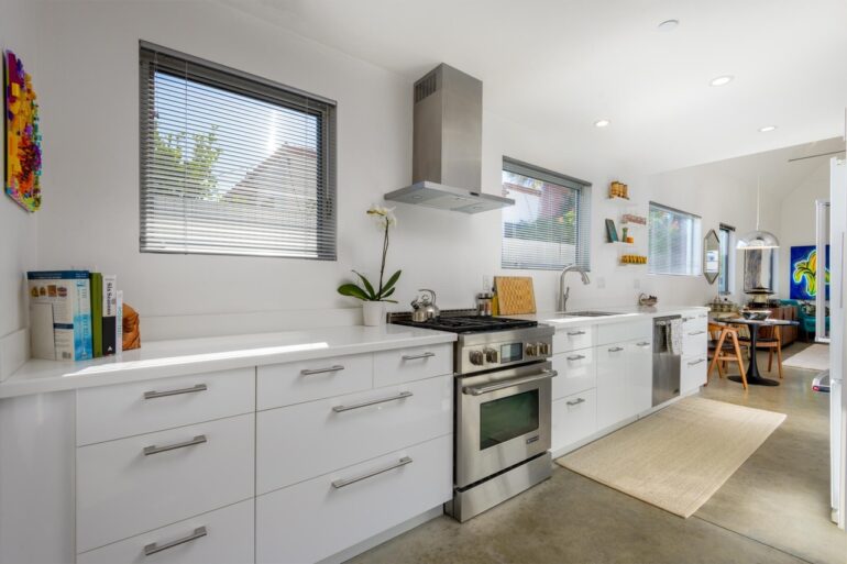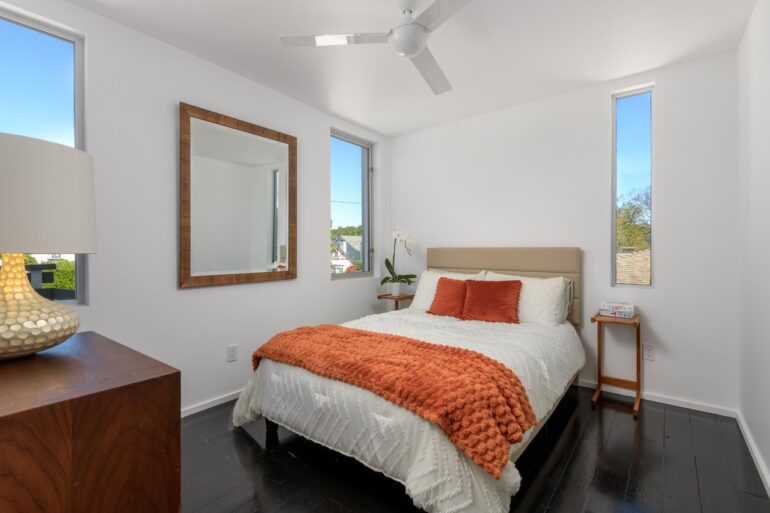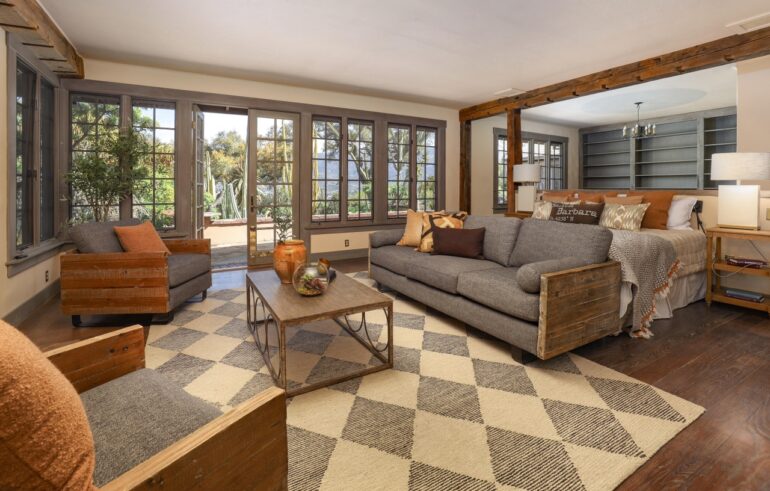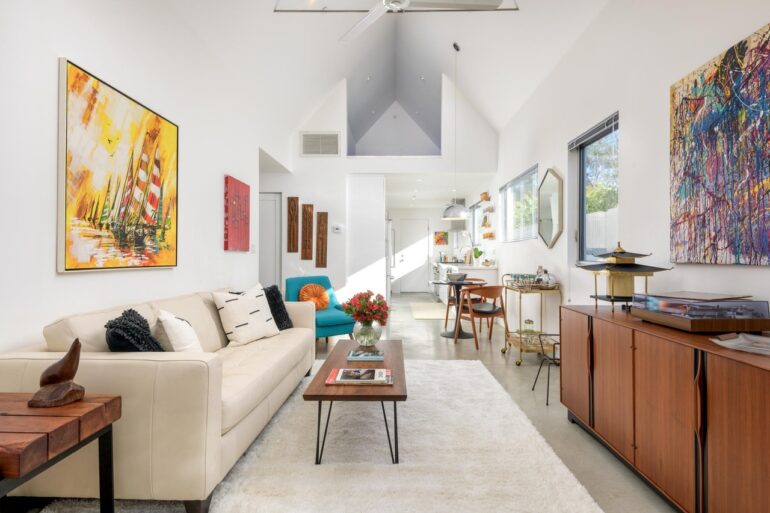 The interiors of 903 W. Mission Street ($2.548 million) have been warmed up a smidge since it sold for $1.715 million in September 2022, but it’s still a very sleek affair. What I wrote last time applies: “AB Design Studio’s 2013 rethink/expansion of a 1920s cottage […] shows what you can achieve with inexpensive materials and clean lines.” Upstairs is an ADU.