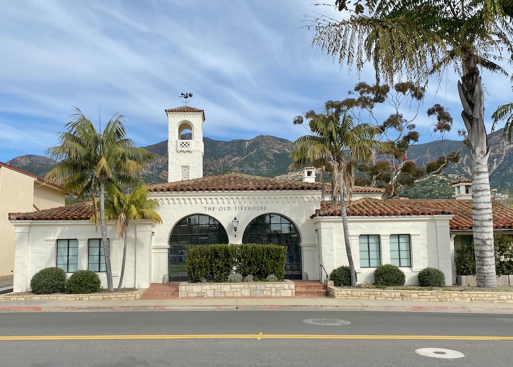 Back in October 2019, when I interviewed Susan Keeney about her then-new Lucca store in the Old Firehouse building, we talked about how well-suited the space is to a restaurant, and she expressed an interest in hosting private dinners there on a regular basis. (If that happened, I never heard about it.) There’s a small bar and an appealing terrace, as seen in the photos I took back then. Even so, when Nicolas wondered whether the Montecito RH store might be a restaurant, I pooh-poohed the notion because of parking constraints. The Old Firehouse only has a handful of spaces, and it will presumably have to come to an agreement with the owner of a nearby lot. Could valet parking be coming to the Upper Village…?