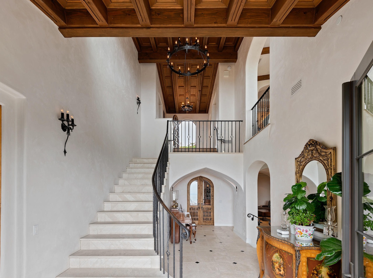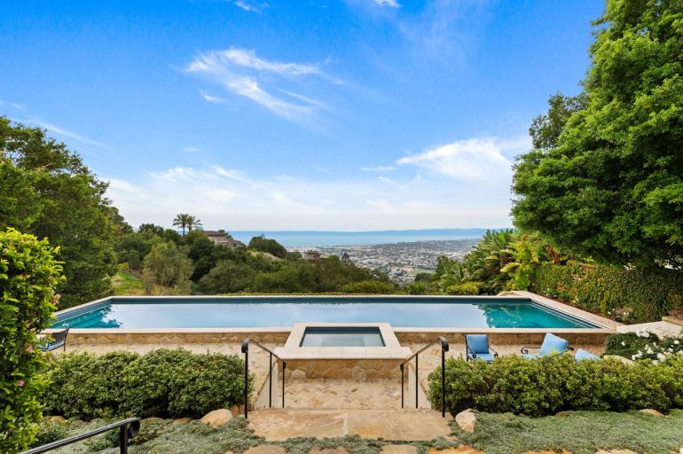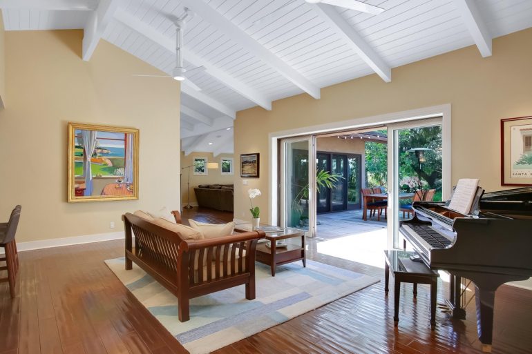 Just two years ago, $9 million would’ve all but guaranteed you an ocean view, but now it might only buy a peek of the mountains, if 1115 Clover Lane ($9.825 million) is any indication. The Riven Rock house recovered nicely from damage during the debris flow, and that turnkey quality is likely to serve it well in this market. Note the ceiling of skylights in the family room.