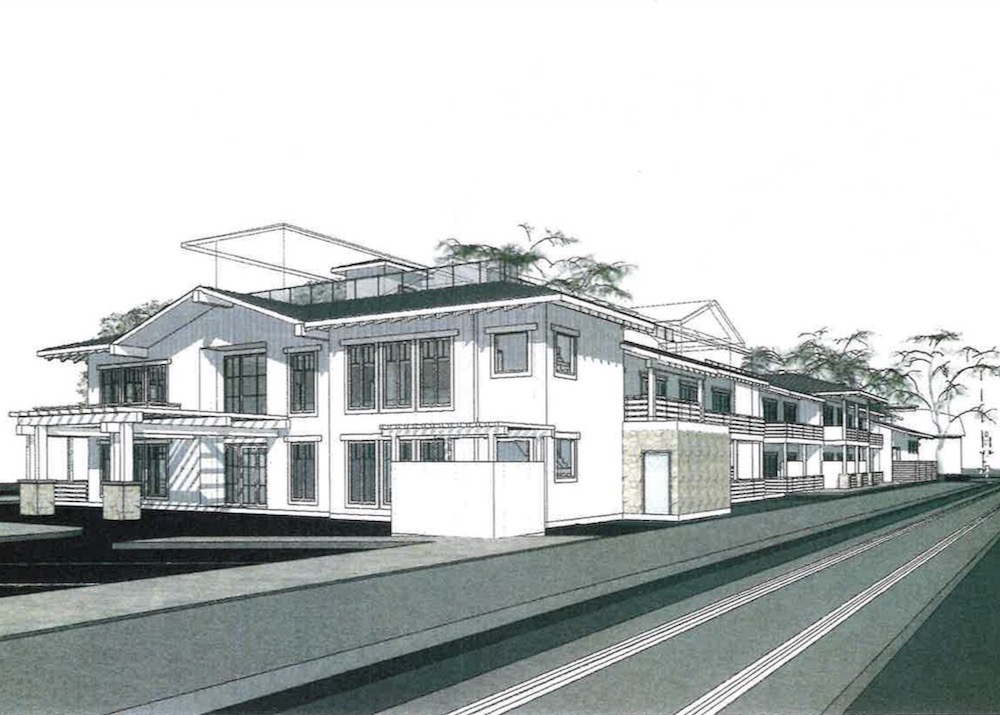 ••• The Carpinteria city council approved the proposed Surfliner Inn: “The latest project designs […] included a smaller footprint and overall mass to the hotel’s facade—most notably the removal of stairwell and elevator towers that originally extended above the two-floor main building. […] With the approval, the project developers can now submit applications and enter the city development review process, including the Architectural Review Board, where it is expected to receive even more changes to the size and scale of the buildings.” This is only good news for Carp. Above: “A composite drawing of an older design and newer plans without the extended towers.” —Independent