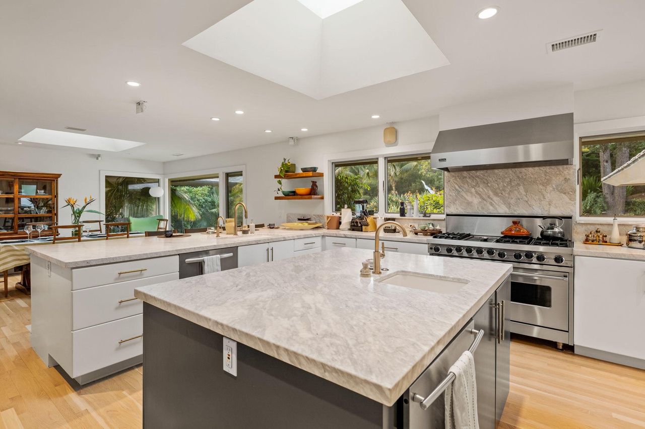 Despite the listing’s insistence, “turnkey” and “beautifully remodeled” are not the words that first come mind when looking at the photos of 1915 Garden Street ($3.199 million), between Mission and Pedregosa. In the property’s favor—besides the Upper East location—is the large, landscaped backyard with a broad deck. The front-yard outdoor seating is less convincing, however, and the two guest rooms share a hallway bath.