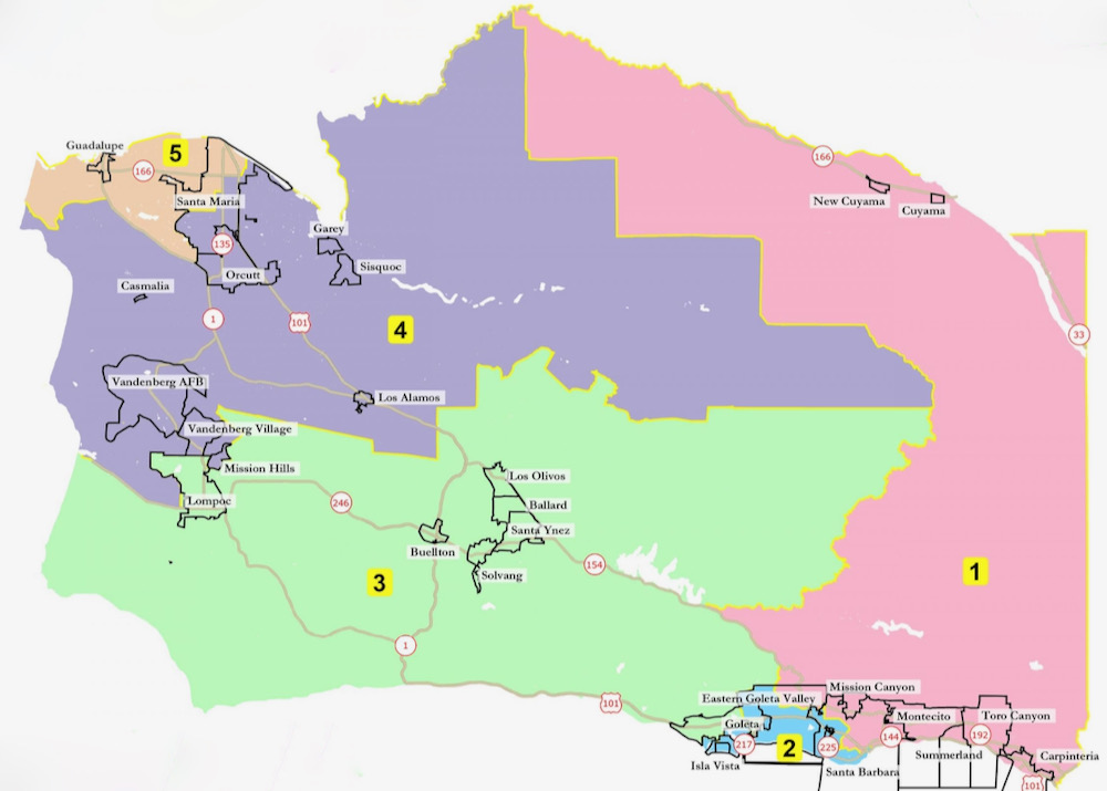 ••• Related: “The 3rd District underwent the most change, with I.V. removed, most of Goleta moved in, Lompoc moved almost entirely into the 3rd District from the 4th, and the Lompoc Valley swapped into the 4th from the 3rd.” —Independent