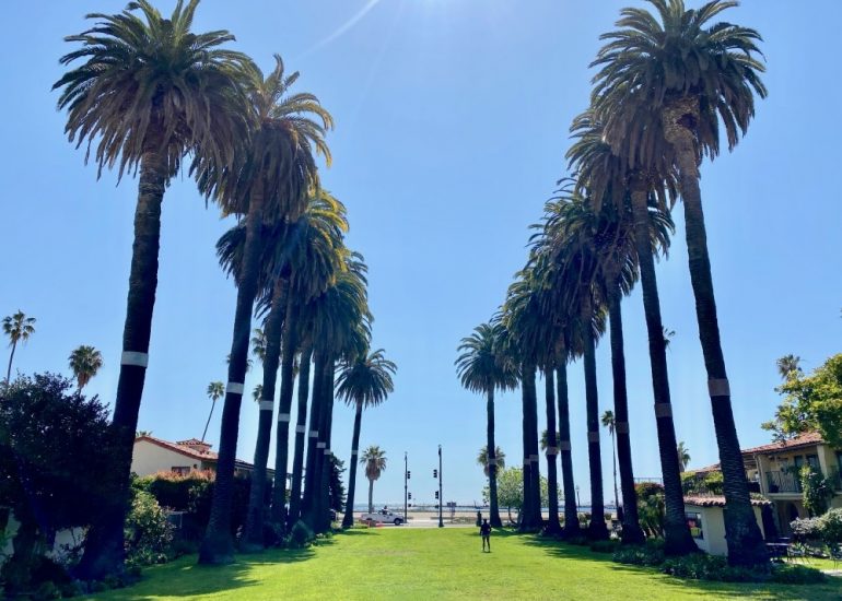 ••• From an op-ed on Edhat by former mayor Sheila Lodge about how Santa Barbara came to have such a stunning array of trees: “In 1769 Santa Barbara was described as ‘dismal.’ The Presidio was built in 1782 on a largely ‘treeless plain.’ A visitor in 1793 said that there were ‘a few dwarf trees and groveling shrubs.’ […] Starting in the mid-19th century, noted horticulturalists imported plants from all around the world to this place where just about everything grows. Eventually Santa Barbara acquired its substantial urban forest. One-quarter of the city is covered by tree canopy.”