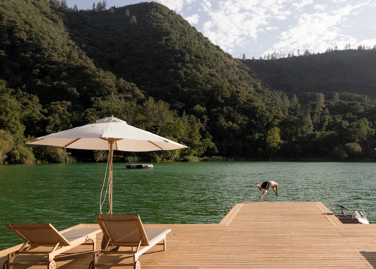 ••• Santa Barbara Magazine has a profile of Zaca Lake, “the only naturally occurring spring-fed lake in Santa Barbara County” and “the centerpiece of a 320-acre resort that remains secluded, spiritual, and stylish.” Located outside Los Olivos, The property is under new ownership and currently only available for buyouts; whether that will change is unclear. (Photo courtesy Zaca Lake.)