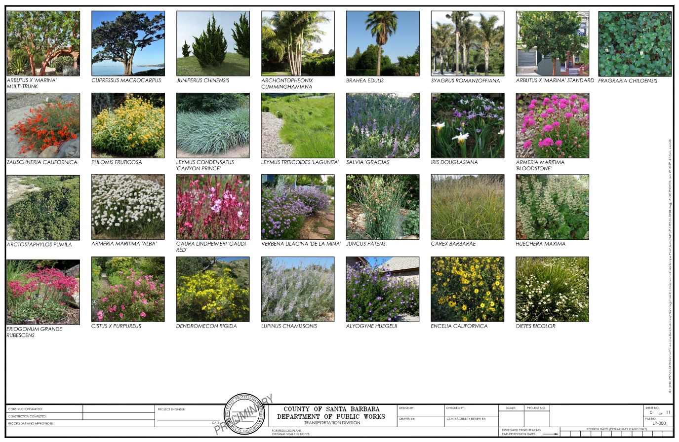 Four privately owned and maintained streetlights within County ROW along Santa Claus Lane will require relocation and replacement. Existing utilities including utility boxes, fire hydrants, and water meters would be reset to the new roadway elevation. Additional utilities may require relocation to clear conflicts with proposed improvements.Landscaping