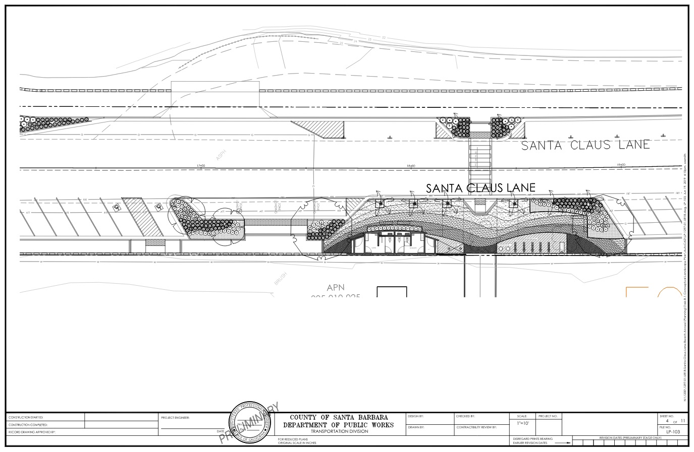 The short version: Santa Barbara County is planning an extensive overhaul of Santa Claus Lane in Carpinteria, with a new bike/pedestrian path, an official railroad crossing, increased parking (in angled spaces), a public restroom, and a roundabout where the street meets the southbound 101 on-ramp. (On one hand, these are clear improvements; on the other hand, there’s a raffish charm to the strip that’s going to be lost.) Best case is that it’s done by end of winter 2023. It’s to be discussed at the County Planning Commission hearing this Wednesday, September 25.