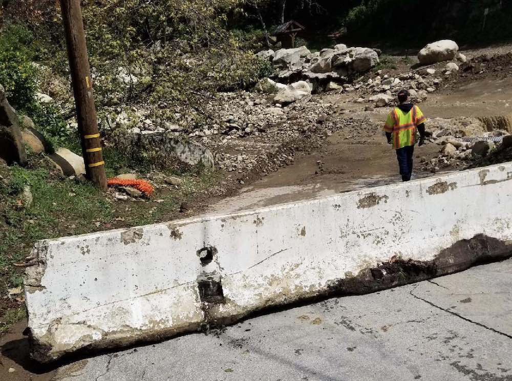 ••• Bella Vista Drive is closed indefinitely at Romero Canyon because of debris flow.