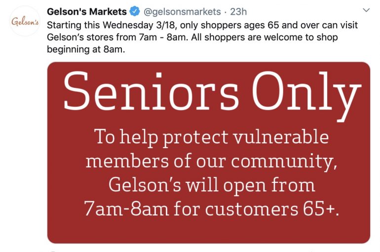 ••• From 7 a.m. to 8 a.m., only shoppers 65 and older are allowed inside Gelson’s.