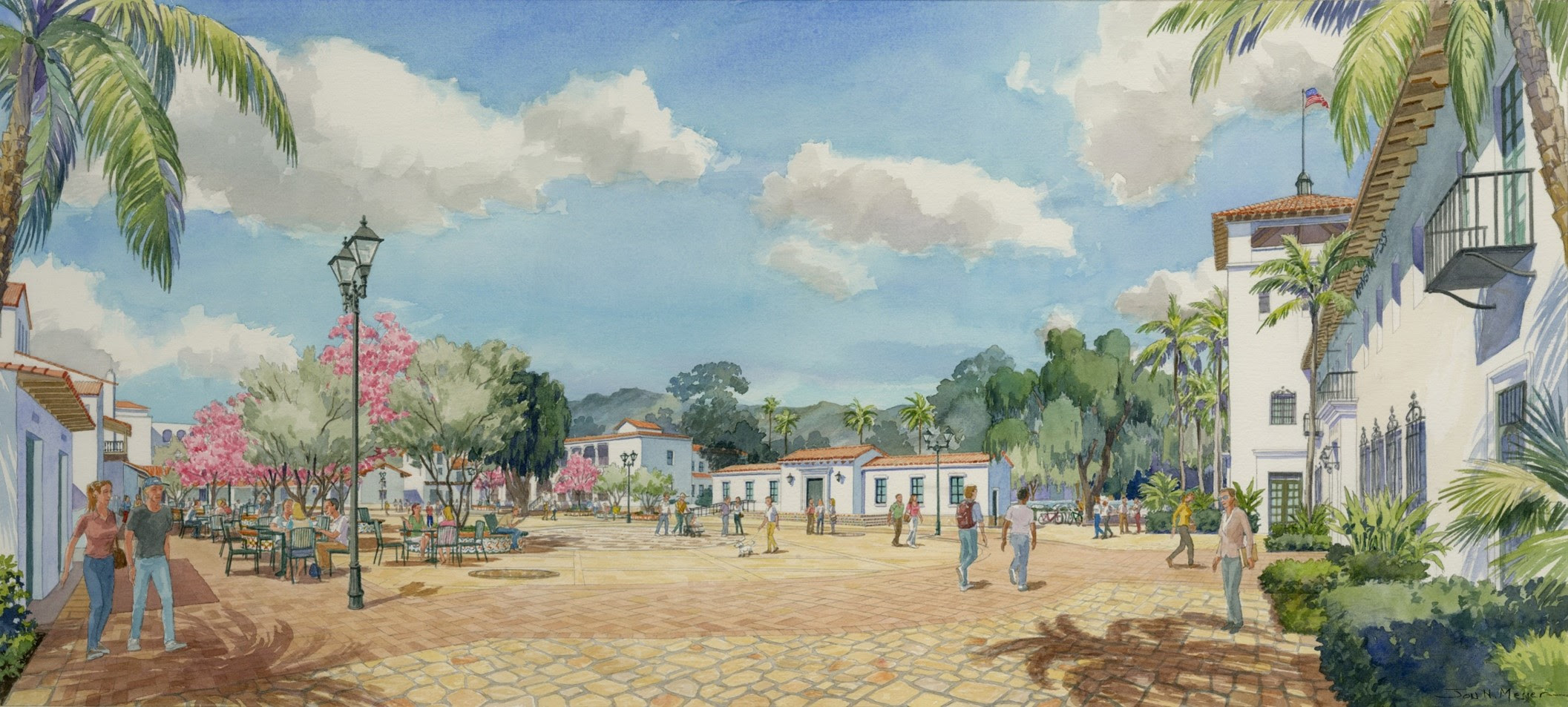 ••• De La Guerra Plaza is also on the HLC’s agenda: “This meeting will be for the Commission to hear a more thorough presentation on the project design features and why the proposed design is the way it is.” I think this rendering is new.