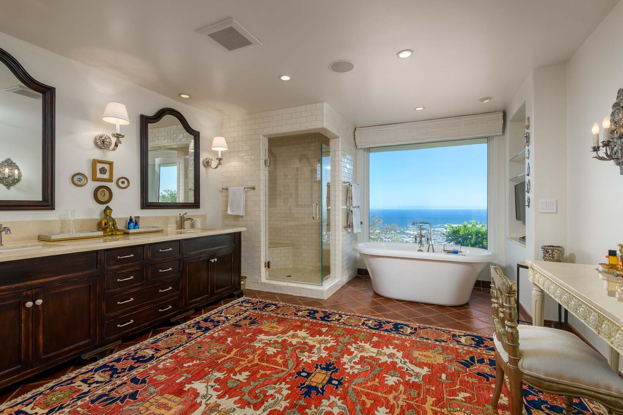 1530 Franceschi Road ($6.85 million) has top-of-the-Riviera views from pretty much everywhere (note the primary bathroom tub), and if you don’t mind the stairs—I counted five distinct levels inside the 1977 house—there’s a lot to like, including two large living rooms and myriad other seating areas, inside and out. Approaching $7 million, however, you might wonder whether you should also get architectural provenance or a pool.