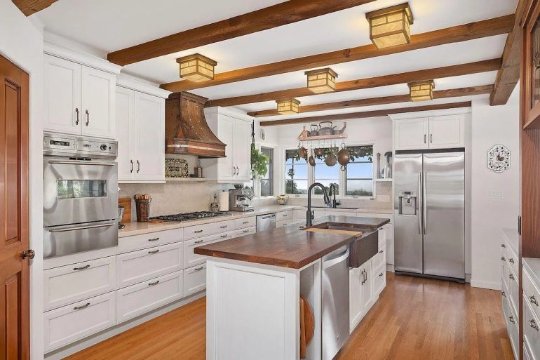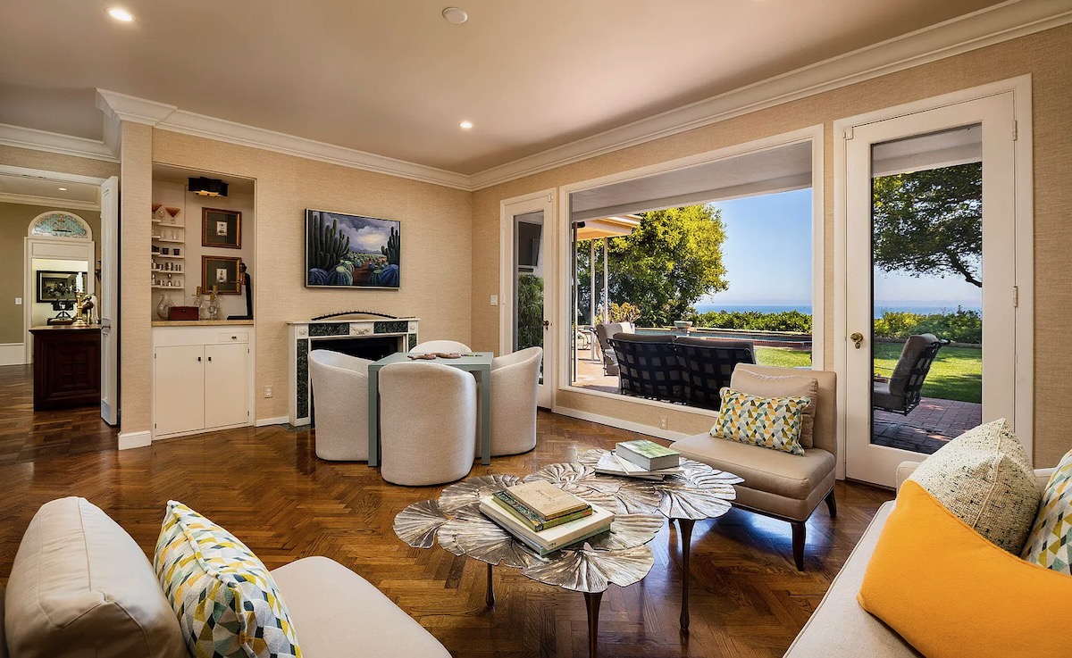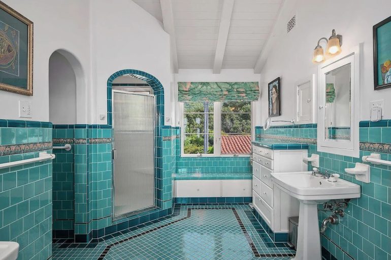 You get bang for your buck at 1865 Cravens Lane ($8.475 million) in the Carpinteria foothills: five acres with the 1938 main house, a guest casita, a guest house, a barn with workshop, and an acre and a half of organic avocado trees. (The house wants a refresh, but here’s hoping the Technicolor bathrooms make the cut.) Moreover, the ocean views are wide and unobstructed.