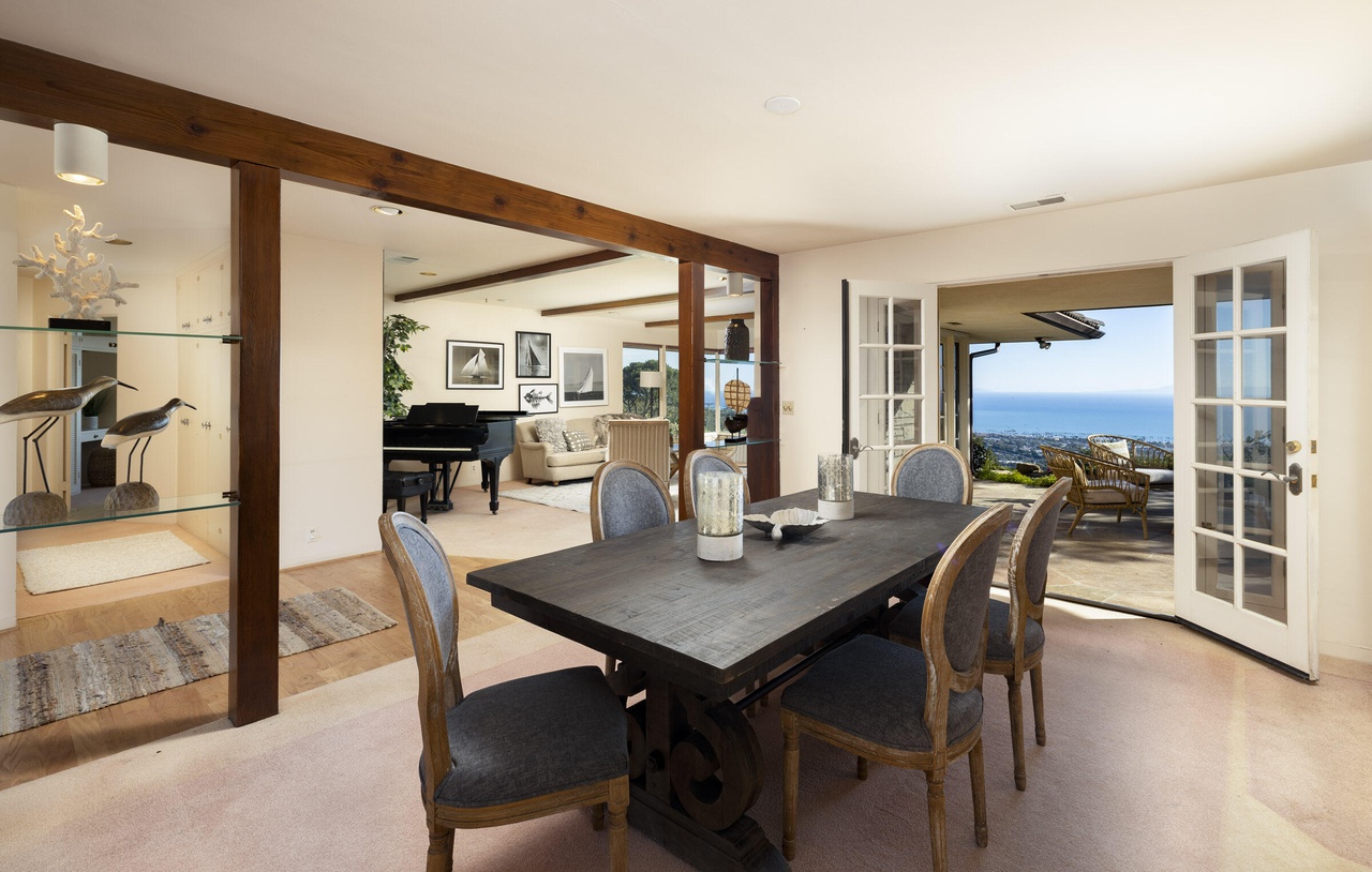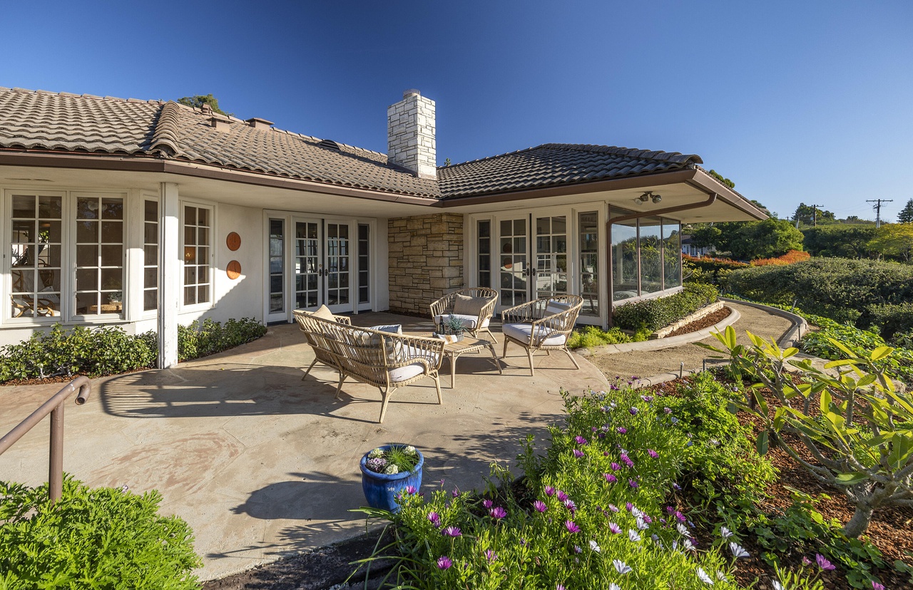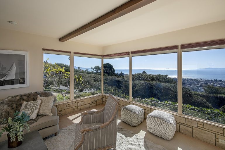 There are great unobstructed views at 1320 Mission Ridge Road ($3.575 million), and it’s single-level. It’s also a project, unless you’re looking for dated surfaces and lots of wall-to-wall carpeting. I’m not sure I understand the point of a porte cochère with a hole in the roof.