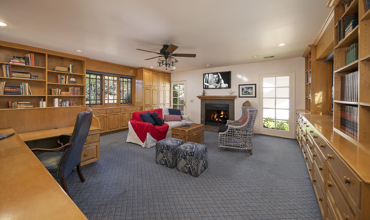 The listing for 999 Romero Canyon Drive ($19.95 million) says the 2002 property is hitting the market for the first time, which is technically accurate, although it did change hands off-market in May 2021 for $9.91 million. Now comes the flip attempt. The house is a biggie—11,000 square feet on 2.43 acres, with “a guest house, bocce ball and lookout terrace, sports court, private hiking trails, and an animal barn”—and, to the seller’s credit, the design choices are far from safe and boring. But you might wish that $20 million would buy more distance from the neighbors. P.S. Which movie is that on the bedroom TV? UPDATE 1/29: Thanks to Tal for pointing out that it’s a young Audrey Hepburn and her mother, Ella Van Heemstra.