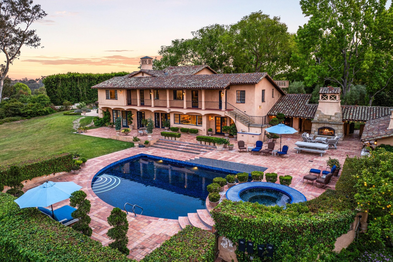 The rustique 1962 Mediterranean at 4451 Via Alegre ($16.45 million) in Hope Ranch is in need of updating, but from what I can tell, the floor plan looks solid, with a main-level primary bedroom. The swell mountain views are presumably why the backyard and pool are on the north side of the house. The lot is 2.52 acres.