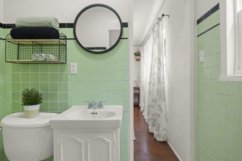The spec renos by Matic Design & Build—such as 3817 Calle Cita and 1250 Bel Air Drive, to name two—reliably have a glam-yet-warm energy that’s very now, and 1062 Camino del Retiro ($4.995 million) is no exception. The firm bought the undistinguished 1964 house for $2.45 million last August and gave it a thorough makeover, including reverting back to the original garage; turning the outbuilding into a swanky ADU; adding a pool, bocce court, and putting green; and introducing indoor-outdoor moments and stylish finishes throughout. (Visitors may find themselves touching many a shower wall.) While I’m unconvinced by the “wine room” off the living room, and I wish a ceiling or two had been popped, it feels like the kind of spread—with four bedrooms, all en suite, plus that ADU—that will impress the neighbors with its freshness. P.S. Is this Park Highlands? I’m never quite sure where the borders are…. UPDATE: Lesley says this is the Rancho San Antonio neighborhood.