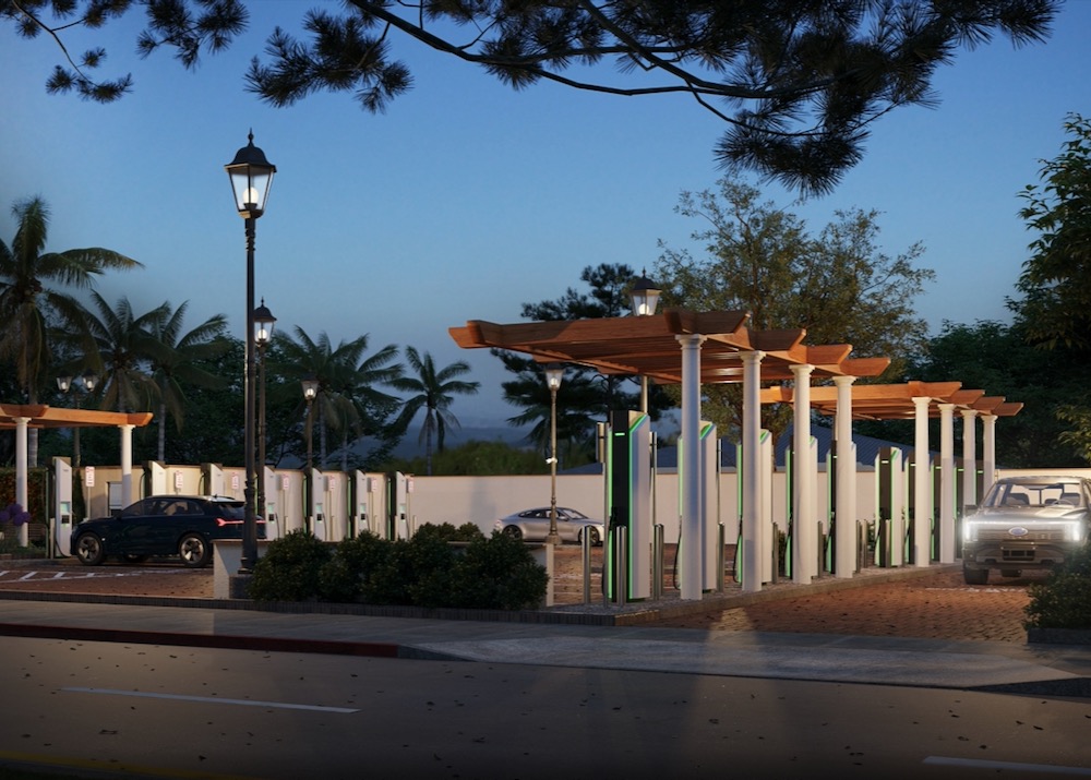 ••• From S.: “I read earlier this year that Electrify America is planning a premium charging station in Santa Barbara where the old Greyhound station was [northern corner of Chapala and Carrillo]. Are there any updates on these plans and timeline? I know Santa Barbara has a ton of EV owners and this development would be of interest—especially for folks who want to top up before a road trip to L.A.” Electrify America says it’s shooting to open in the summer of 2023. (A rendering is below.) I also reached out to the city Planning Counter, which said that “the project is still under review by the Historic Landmarks Commission and a final decision has not yet occurred. The project was last heard on January 19, 2022″—comments from the meeting are here—and the ball is in Electrify America’s court.