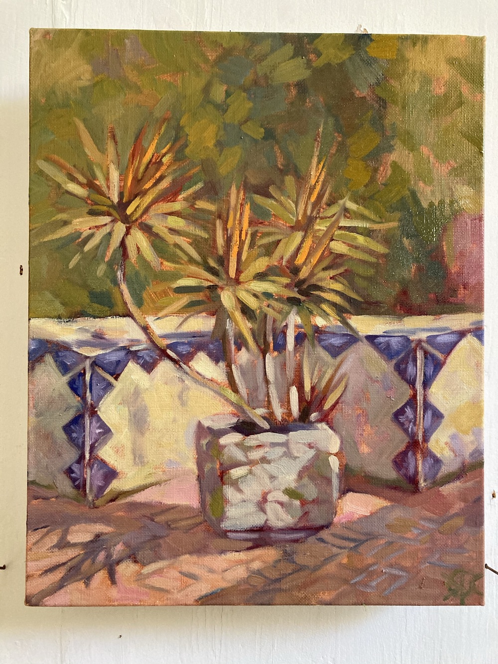 ••• Lotusland’s online art sale and gallery exhibition, “Sanctuary—From the Garden, For the Garden,” opens April 22 here and by appointment at the GraySpace Gallery in the Funk Zone: “The invitation was sent to 36 local artists to participate. Artists were asked to create new work inspired by Lotusland. Artists were given three days to visit the Garden and only eight weeks to create, capture and complete their muse at Lotusland. Whether it be a specific garden, found materials, or to create in the Garden their piece of work for the show. It was a creative concept and challenge that the artists were craving, especially this year.” Below: “Courtyard“ by Whitney Brooks Abbott and “The Portals: An Entrance–Lotusland, 3.16.21” by Blakeney Sanford.