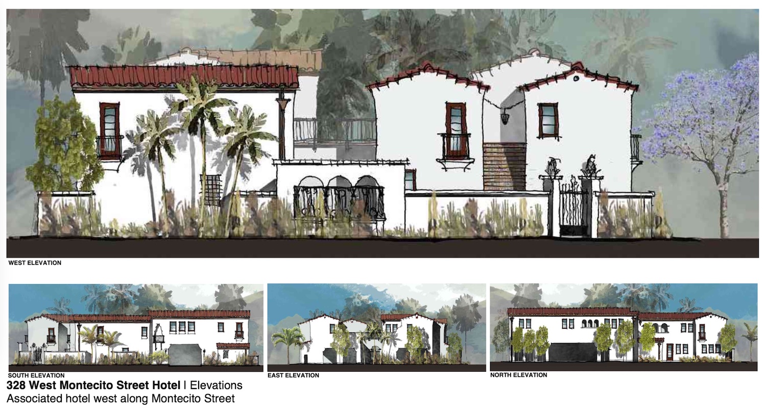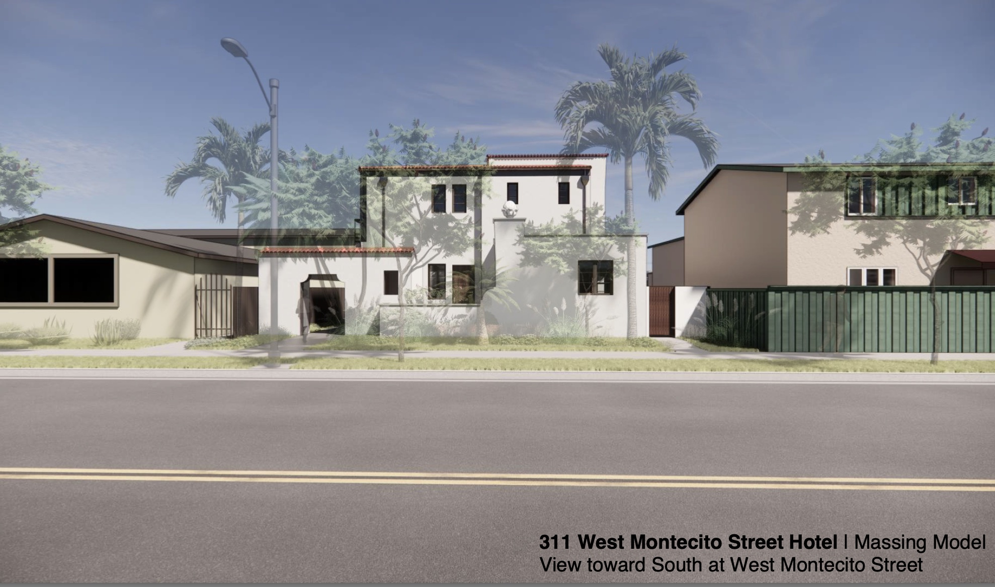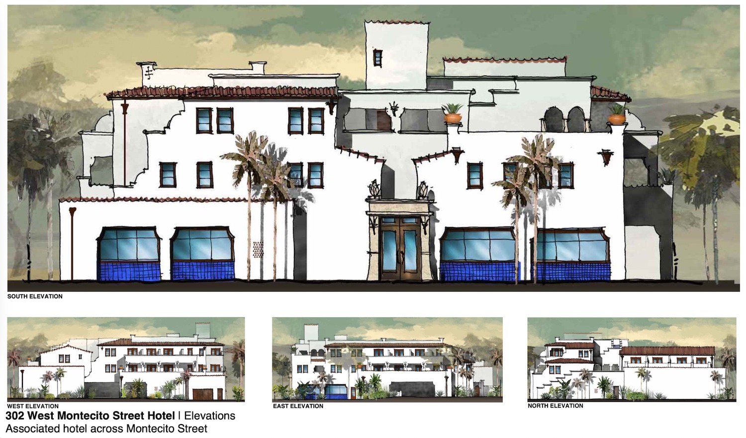 ••• The other day, the city’s Architectural Board of Review discussed the complicated hotel project—it’s spread out over three non-contiguous lots—on W. Montecito Street between Castillo and Bath. The agenda item was specifically about 311 W. Montecito, but the description explained how the hotel will work: “Proposal for a new two-story, 3,852-square-foot hotel containing three units. Each hotel unit would include a kitchenette, living room, two bedrooms, and outdoor space. Hotel amenities including drop off, check in, concierge, etc. would be provided at 302 W. Montecito St., the primary hotel location. Parking would also be provided at 302 W. Montecito St. via a shared parking agreement.”
