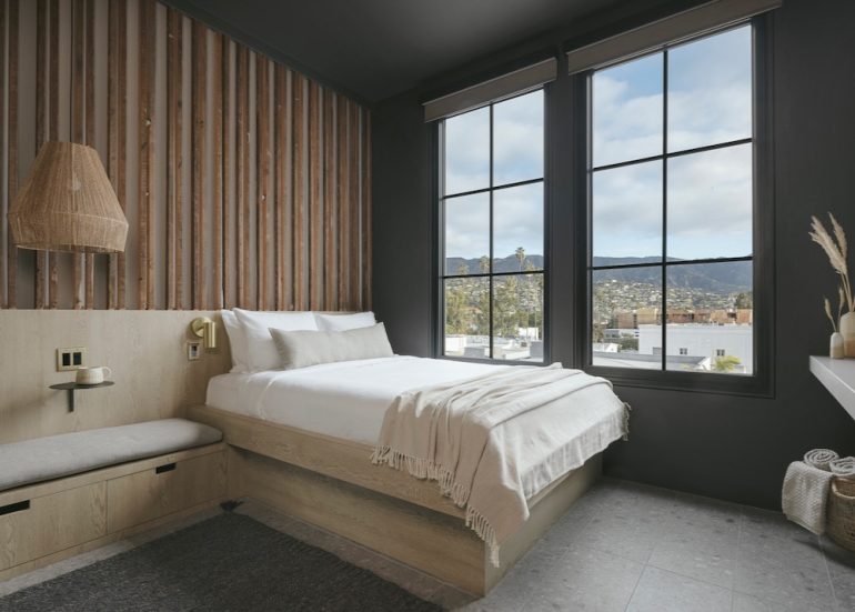 ••• The Drift hotel on State (Cota/Haley) has opened, along with its café and bar. Based on photos that have popped up online, the interiors by Anacapa Architecture look cool, depending on how you feel about no wall between the bed and bathroom. (The toilet presumably gets some privacy.) And the café and bar basically share the same space, so if you want to drink your coffee there, you’ll be in a room that feels like a bar. There’s minimal staff at the 45-room hotel, so you can expect “contactless check-in” (and when you try calling, like I did, you’ll probably end up talking to someone at the sister property in San José del Cabo) and paying extra for housekeeping (something that’s only mentioned on the FAQ page). Rates are around $225 on weekdays and $350 on weekends through March, then move up to around $300 and $475, respectively; a $225 rate entails around $25 more in taxes and fees, for a total of $250. The exterior shots below are by me, while the others are from the hotel’s website. (UPDATE: The hotel’s PR team didn’t want me to run the images from the website, so you’ll have to go there to see them; approved ones have been added here.)